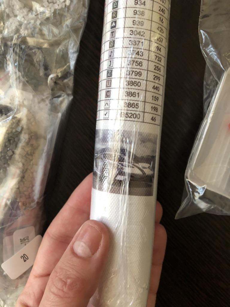 Всё хорошо упаковано. Картину собрала, получилась красивая, выкладка не полная.