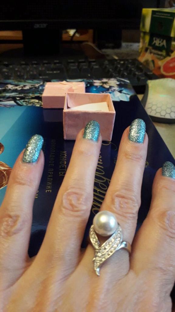 Изящное, изысканно - благородное кольцо с крупной жемчужиной. Качество на высоте! Размер соответствует размерной сетке продавца. Прибыло в подарочной коробочке. Доставка 30 дней с полным отслеживанием до Красноярска. Продавцу большая благодарность!