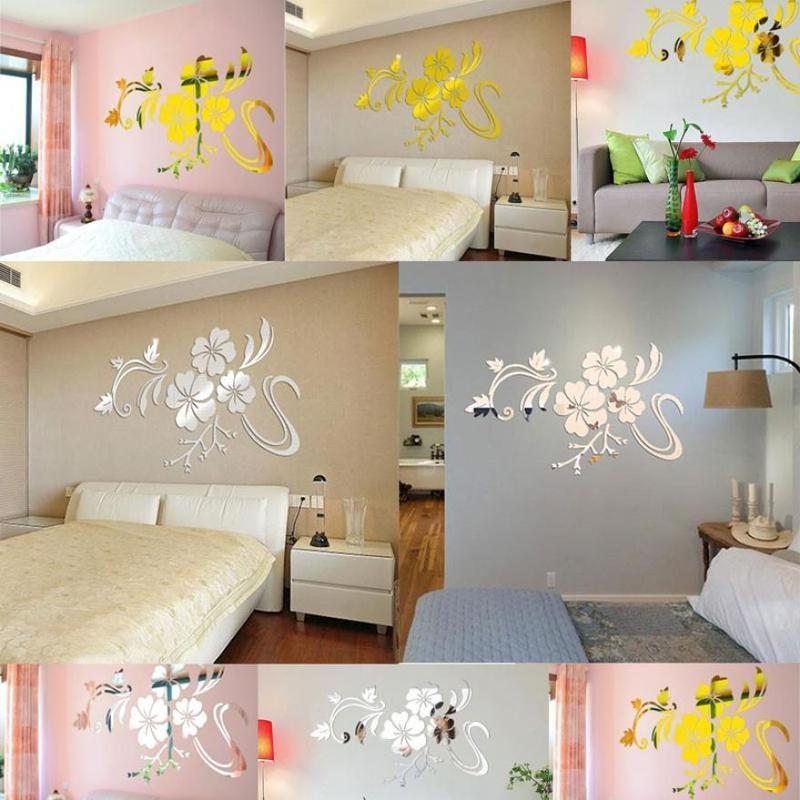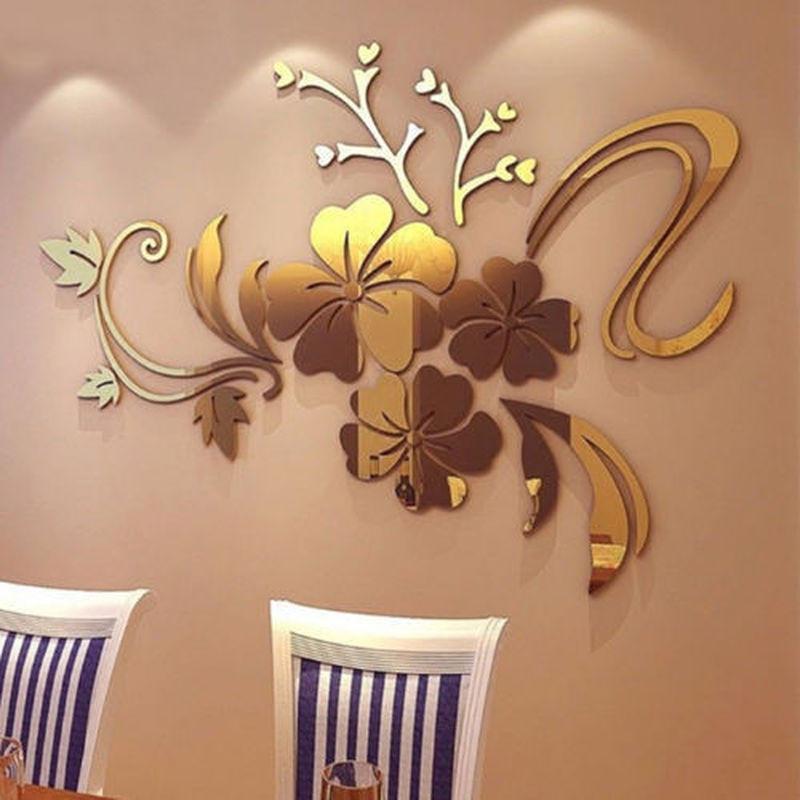 Съемный 3D зеркало цветок искусство стикер стены акриловая роспись наклейка домашний декор комнаты