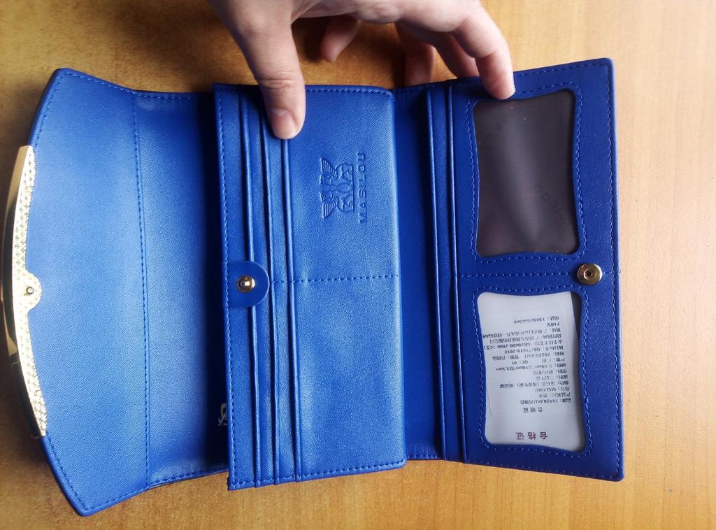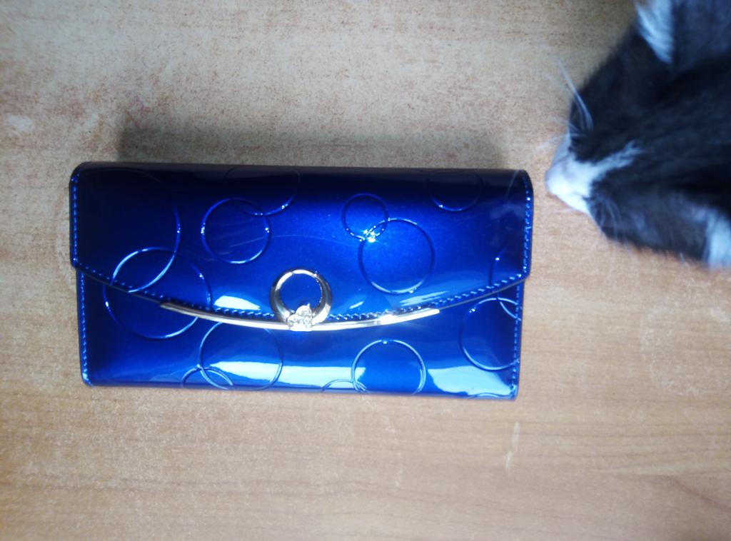 Кошелёк прелесть! 💙💙💙💙💙 Лакированный кожзам темно-синего цвета, внутри простой синий кожзам. Смотрится красиво. Множество отделений, все очень аккуратно и качественно. Заказывала за 1629 рублей, сейчас он стоит намного дешевле.