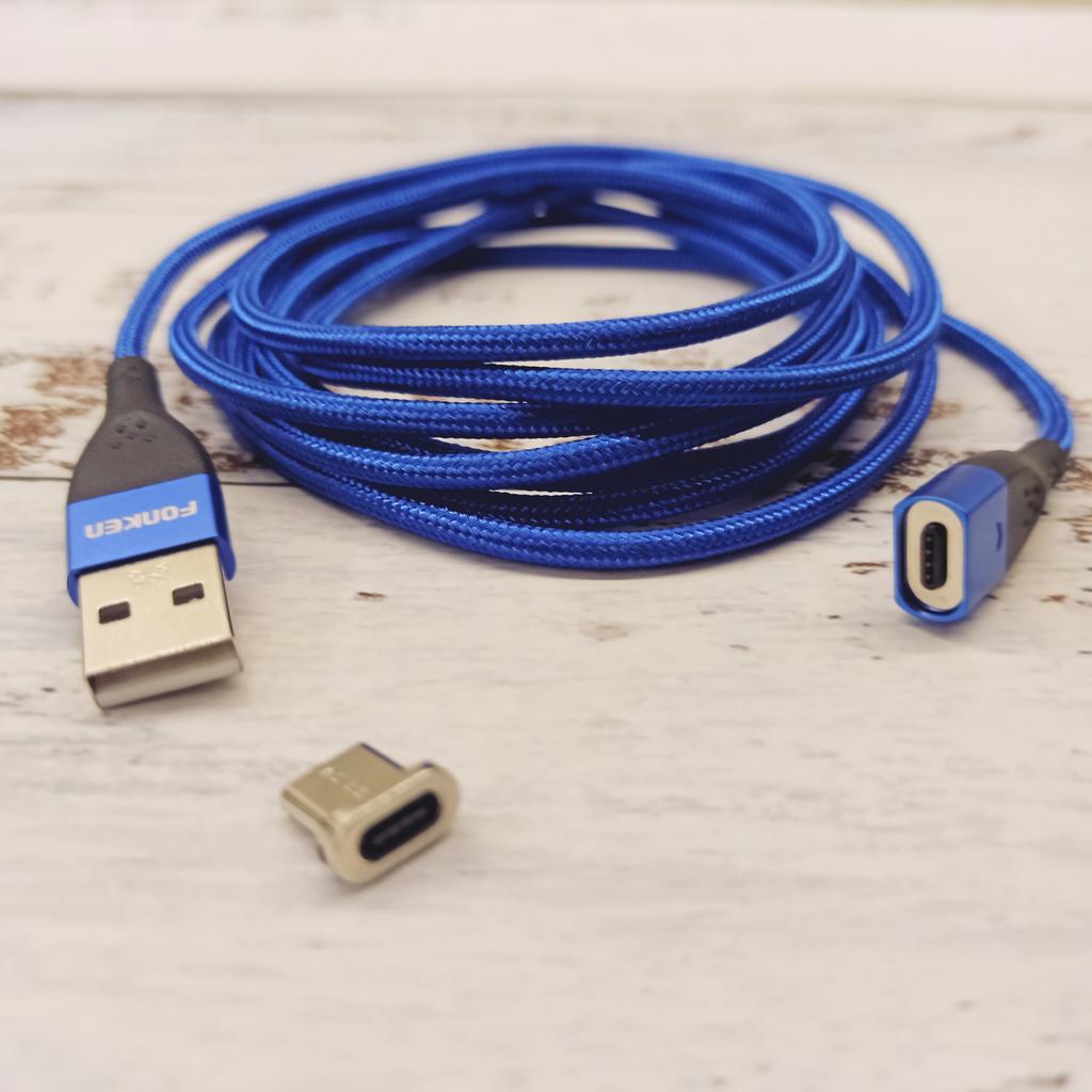 Магнитный кабель с адаптером USB Type C. Производитель Fonken. При использовании зарядного устройства, поддерживающего функцию быстрой зарядки (Quick Charge 3.0) этот кабель будет заряжать ваш смартфон очень быстро 😀. Благодаря зелёному светодиоду я легко нахожу телефон в темноте. И часто использую кабель как ночник. 😀 Светодиод очень яркий. А у меня ещё и второй такой же шнур черного цвета. Когда они оба в работе, в комнате светло. Разъем магнита имеет овальную форму, что позволяет не выступать за края тонких смартфонов. Это было важным аспектом в моём выборе кабеля. Материал оплётки кабеля - высокопрочный нейлон. Т.е. оплётка не рассыпется через 2 года использования, как это происходит с оплёткой из ПВХ. Брала кабель длиной 2 метра, чтобы не быть рабом розетки. 😉 Оба кабеля продавец отправил в одной посылке.