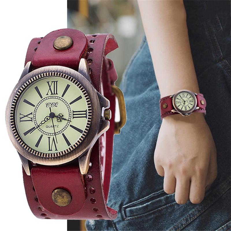 Женские кварцевые часы в ретро стиле на широком кожаном ремешке — купить товар онлайн с бесплатной доставкой до всему миру!
