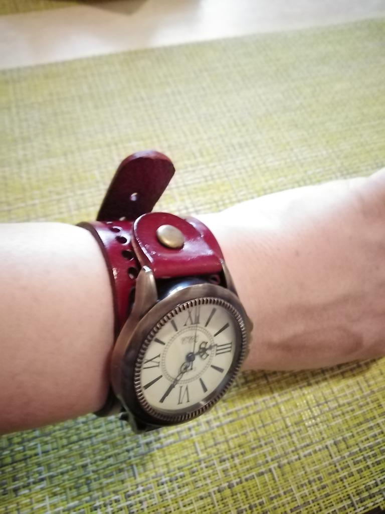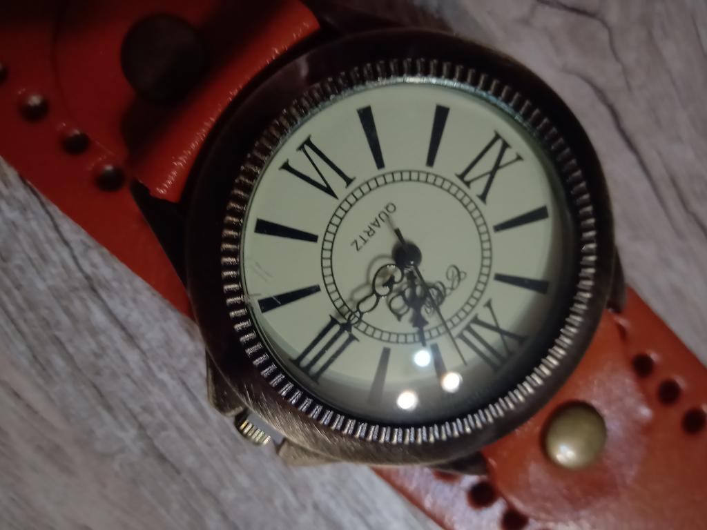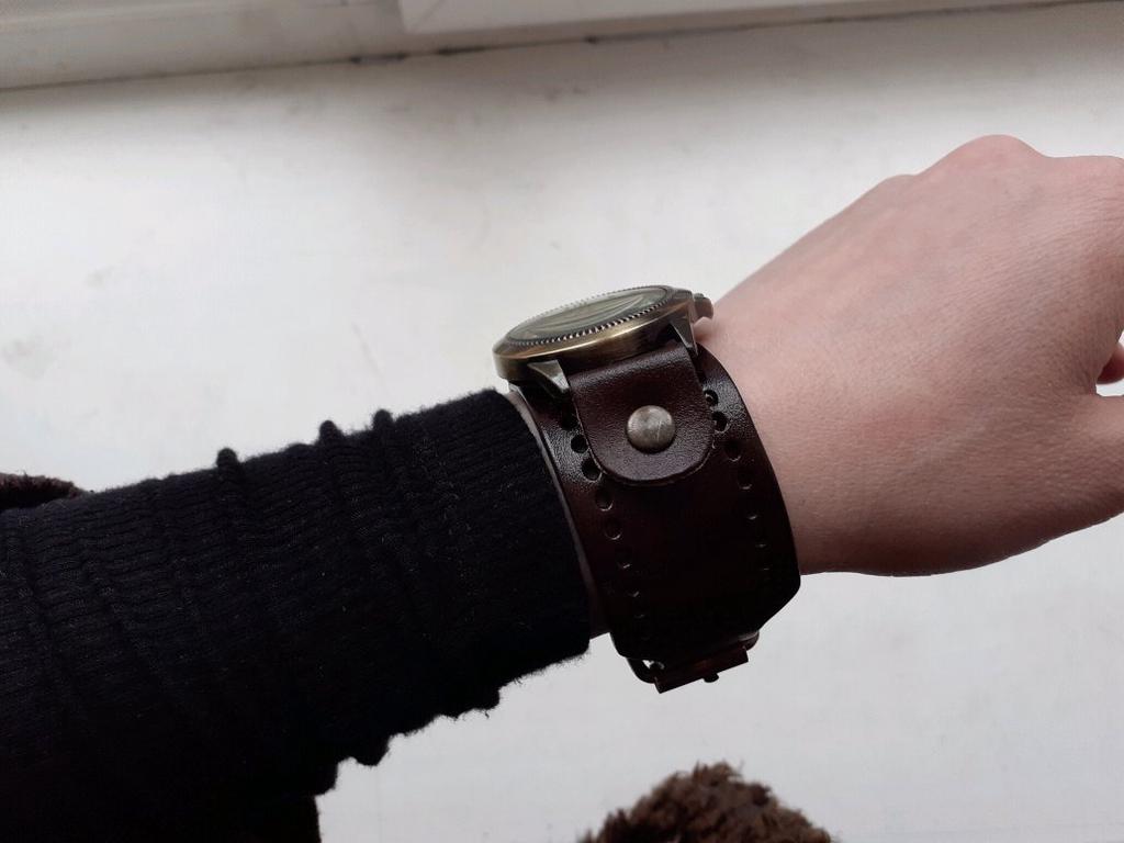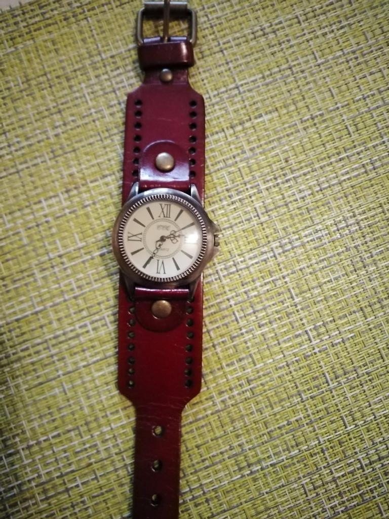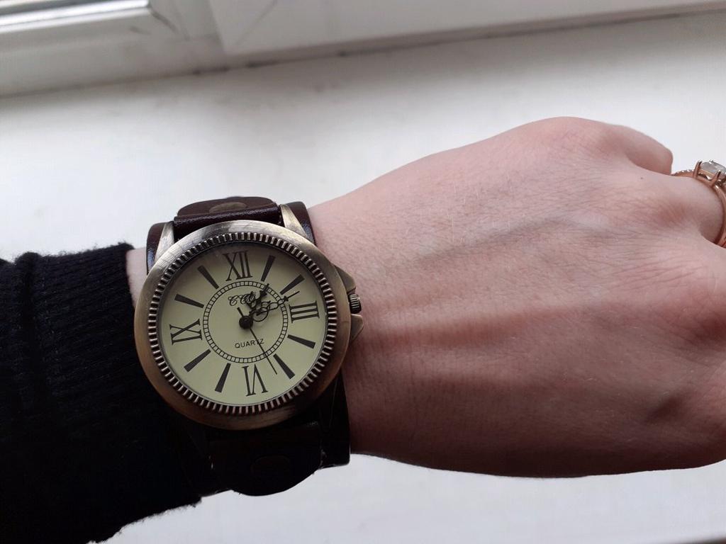 Часики выглядят отлично, добротный, жесткий ремешок, когда уляжется, будет вообще улет. Интересный циферблат, винтажный, как бы состаренный, корпус. Винный богатый цвет. Присутствует запах, скоро выветрится. С доставкой была задержка, но по вине белорусской стороны. Сняла стопер, сразу пошли. Надеюсь, порадуют не один день Спасибо. Рекомендую. По прежнему довольна, вот только несколько раз выскакивал штырек, поддерживающий часы с ремешком, не знаю, как называется. Заменяла другими, со старых часов. А в остальном идут отлично, сидят на руке комфортно, выглядят стильно и неизбито. Сегодня зсказала на лето похожие, в таком же винтажном стиле, только с перемоткой на руке, белые. Надеюсь, порадуют. Спасибо Джум, очень рекомендую.