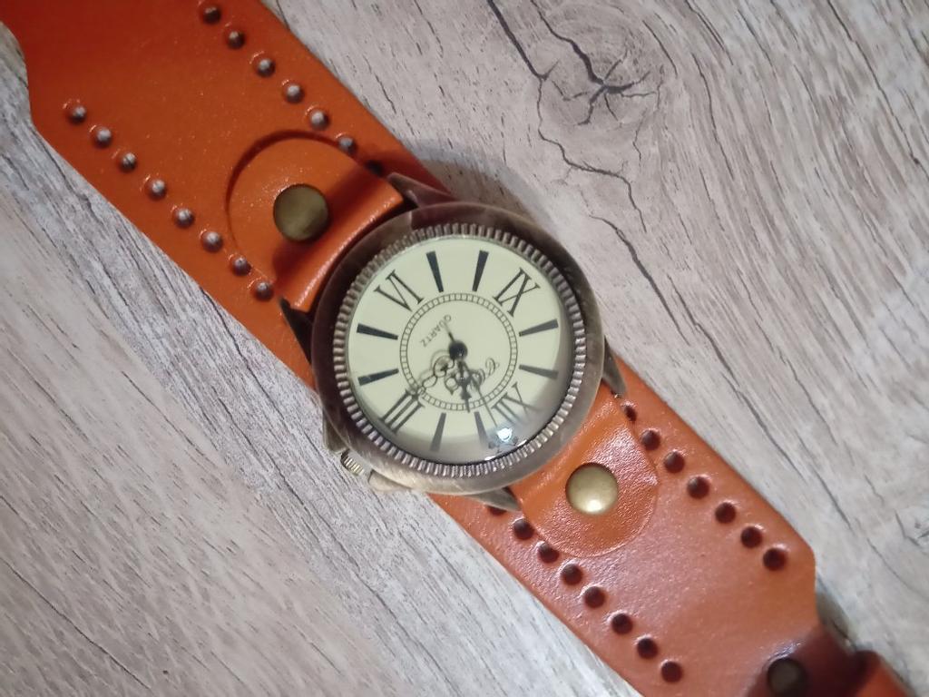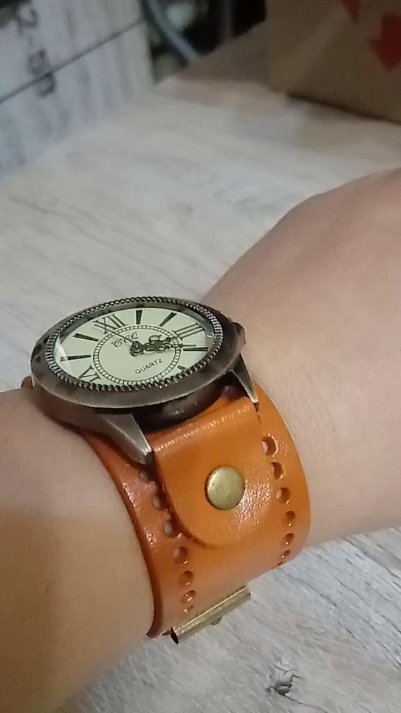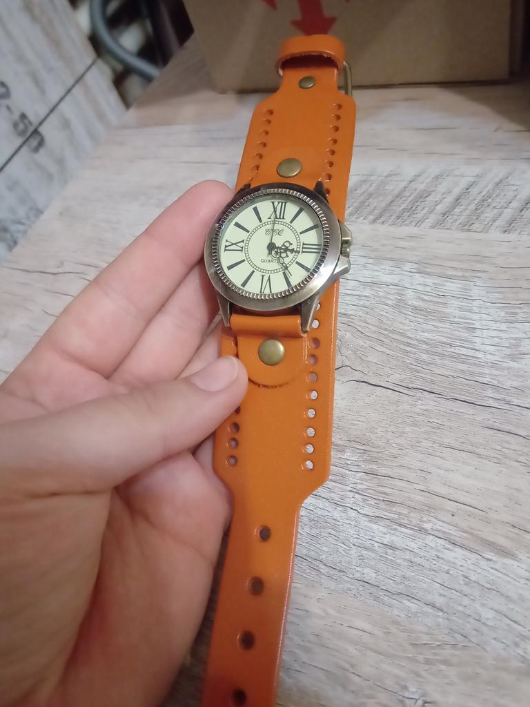 ⏱️Часики пришли меньше,чем за 2 недели, меня это очень удивило и порадовало .В Киев за 4 дня, через неделю были в почтовом отделении. 🎁Упакованы хорошо,в пакет-пузырек, никаких повреждений нет. 🎈Смотрятся просто удивительно! Цвет ремешка больше терракотовый,чем оранжевый, вживую даже лучше ,чем на сайте,металл под старину,не знаю ,что за сплав,выбирала ремешок с минимальным контактом к металлу,я аллергик. 🏃Снимается предохранитель и стрелки работают. Этим заказом очень довольна. Частенько с Joom приходят вещи сомнительного качества,а здесь все на уровне. Ремешок из прессованной кожи ,есть запах кожа+краска, но это нормально. Роскошные,винтажный стиль, рекомендую!!!