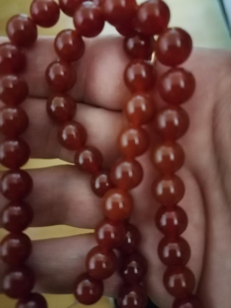 38 прелестных бусин как на фото,на свет красно оранжевые,круглые-посмотрела кабашон по цвету совпадает-сердолик походу дела.Тяжеленькие и холодные.Но у меня нет фиолет лампы чтобы окончательно проверить.Будем верить продавцам что эти бусы истино сердоликовые!🧡