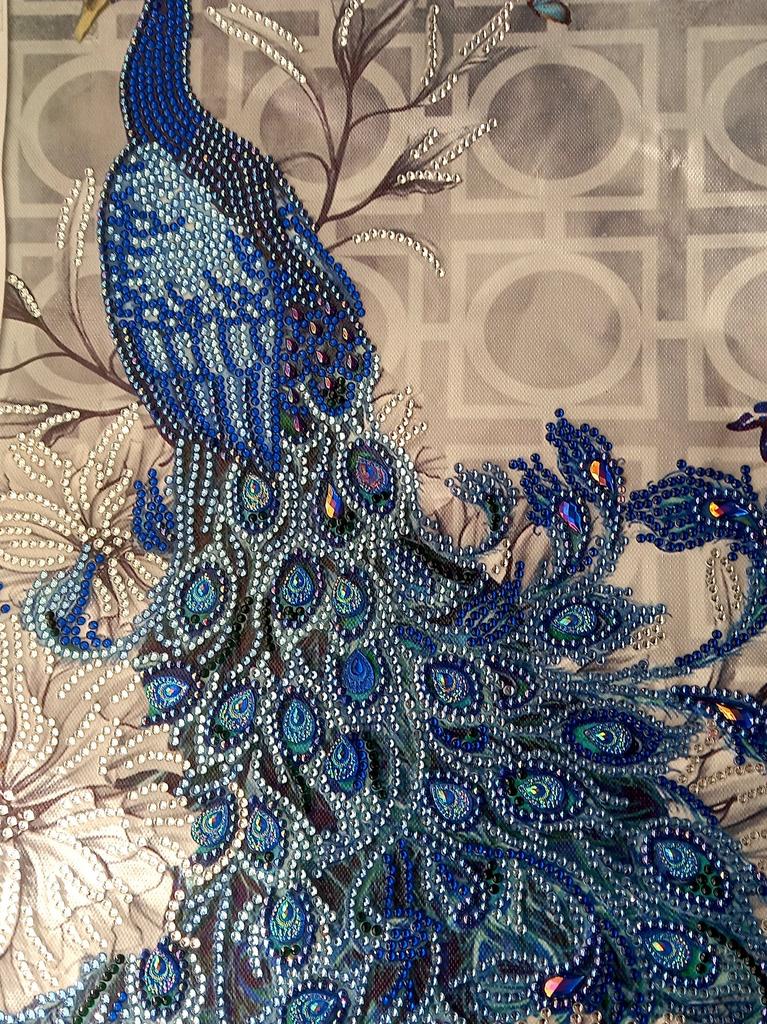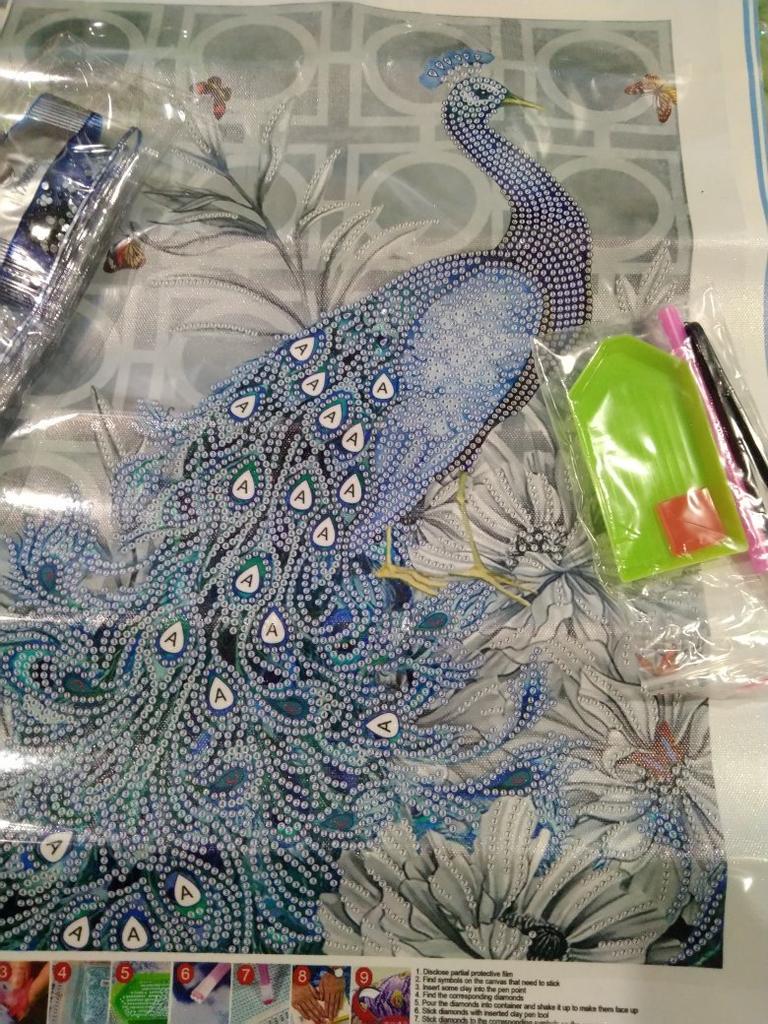 Нереальной красоты картина получилась. Я в полном восторге! Выкладывала на одном дыхании, так хотелось поскорее закончить Прилагаю видео при дневном освещении на солнце и вечером, при искуственном освещении Даже не павлин, а сказочная Жар-птица! В наборе идут стразы, специальный стилус для страз, пинцет, пластиковый лоточек и клеевая подушечка. Всё хорошо упаковано Стразы положили с большим запасом, осталось много Размер картины 35×45 В реальности выглядит ещё красивее, чем на фото и видео! Тысячи искрящихся бликов 💎