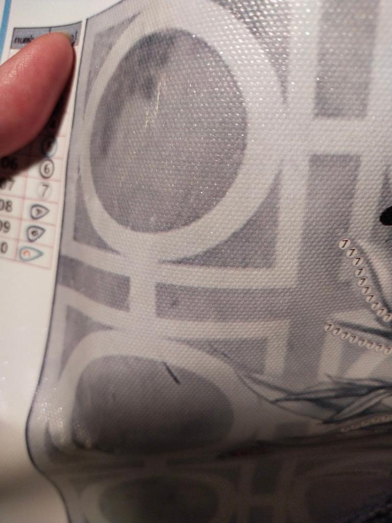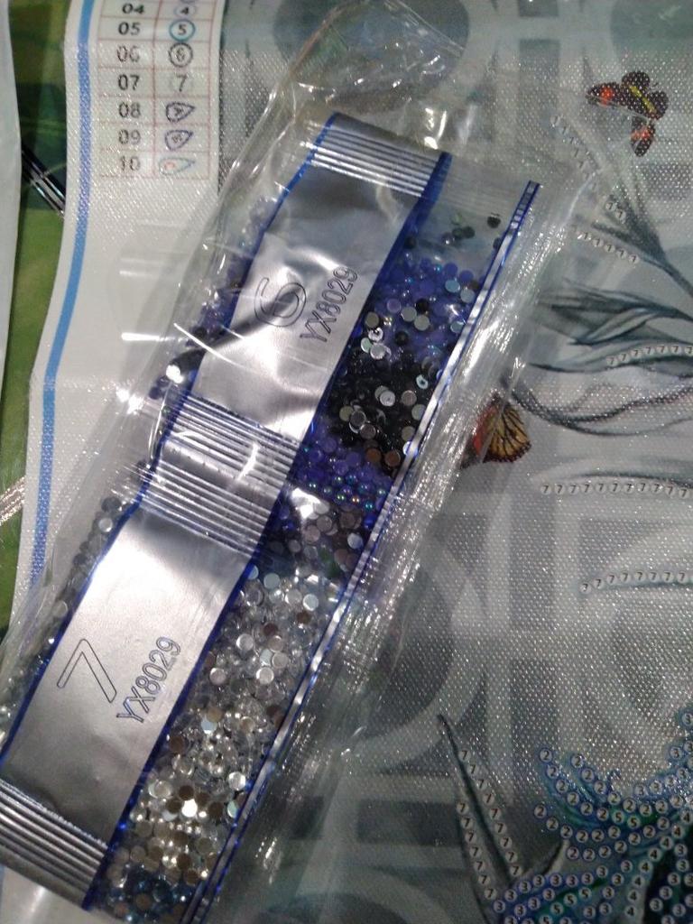Комплектация полная. Размер гораздо меньше заявленного, что уже сильно разочаровало. Упаковка целая, а полотно повреждено, значит товар ещё до упаковки был поврежден. Видимо магазин совсем не интересуется отзывами, иначе способ скручивания картины уже давно поменяли, ведь это надо было додуматься смотать лицом наружу, потом где-то этот свёрток повалять, потереть, а затем уже упаковать. Стразы местами облезлые.