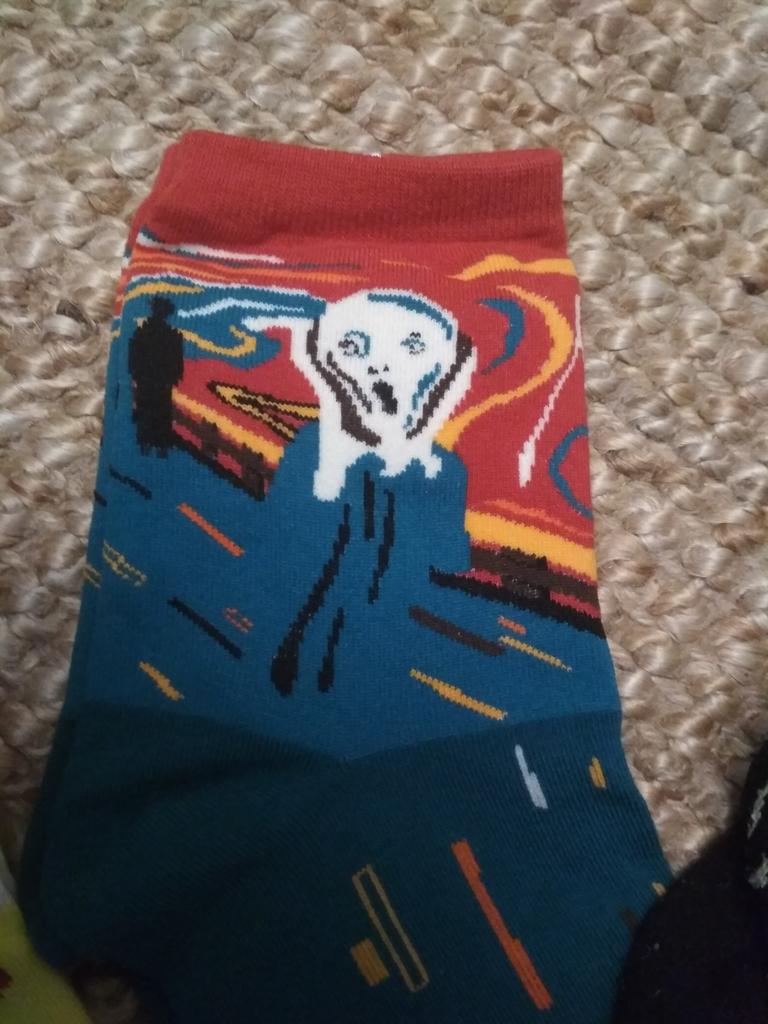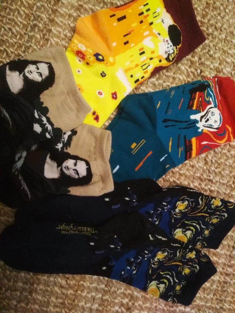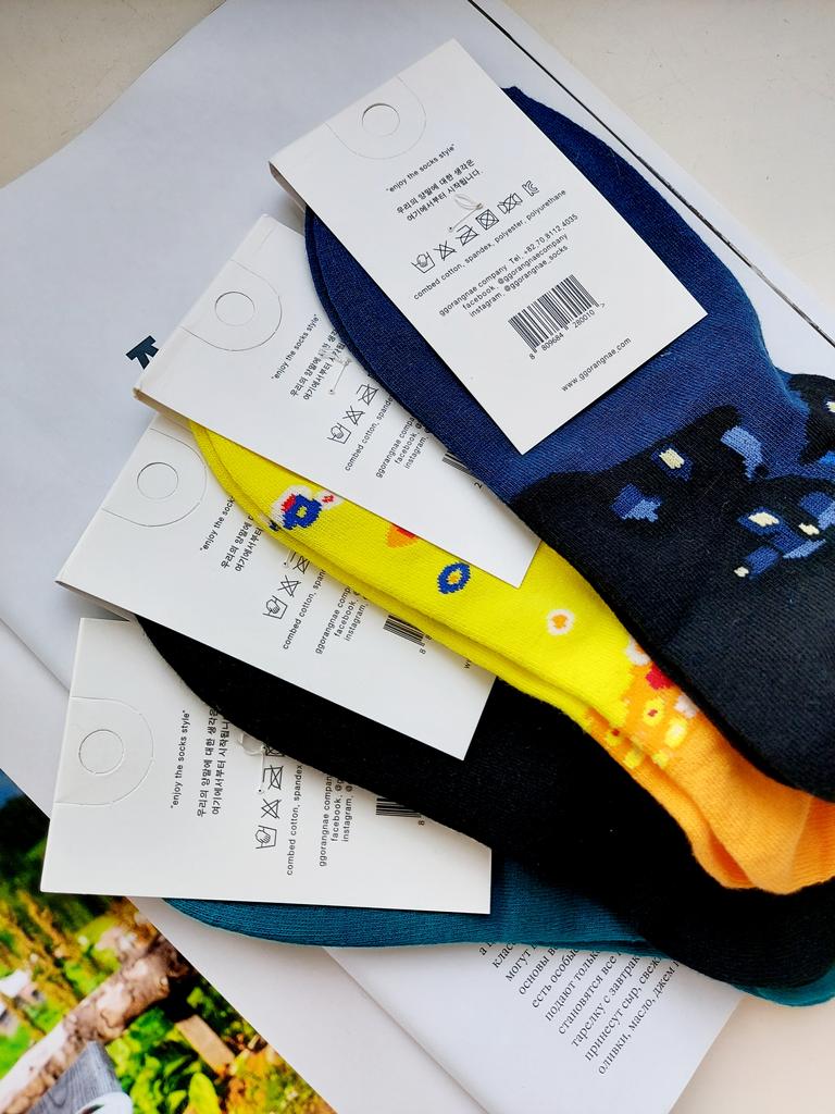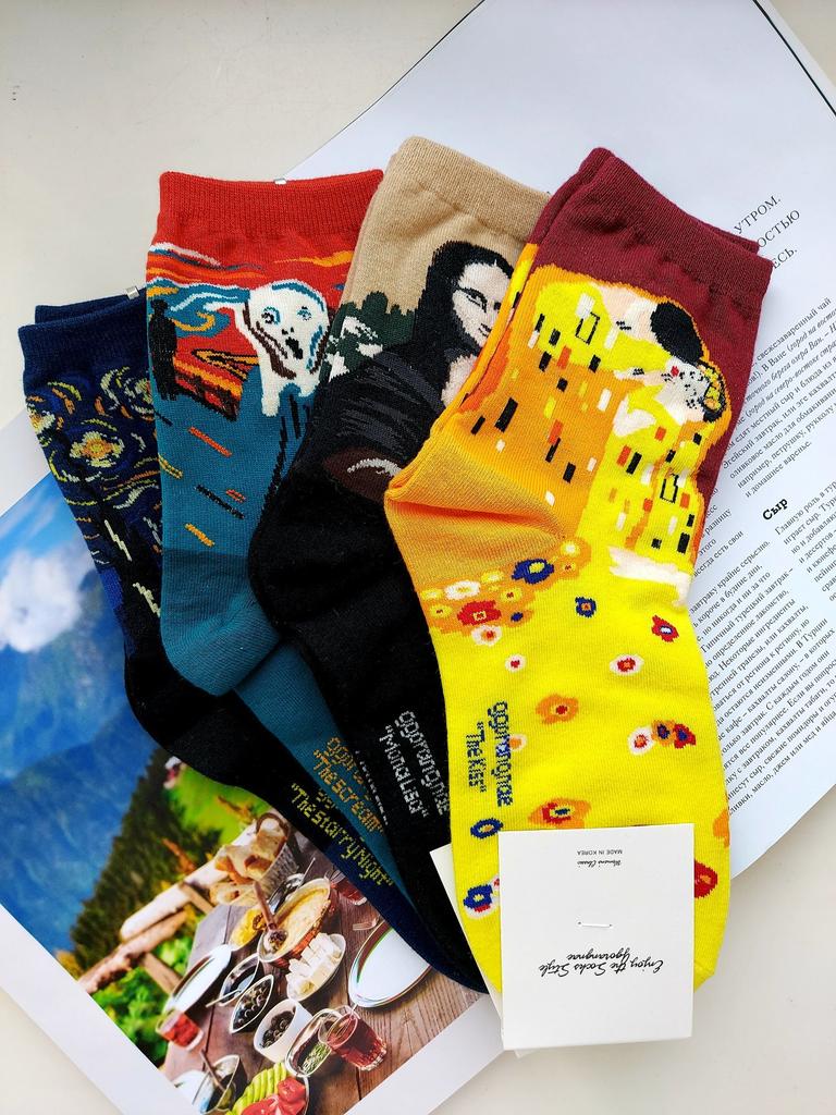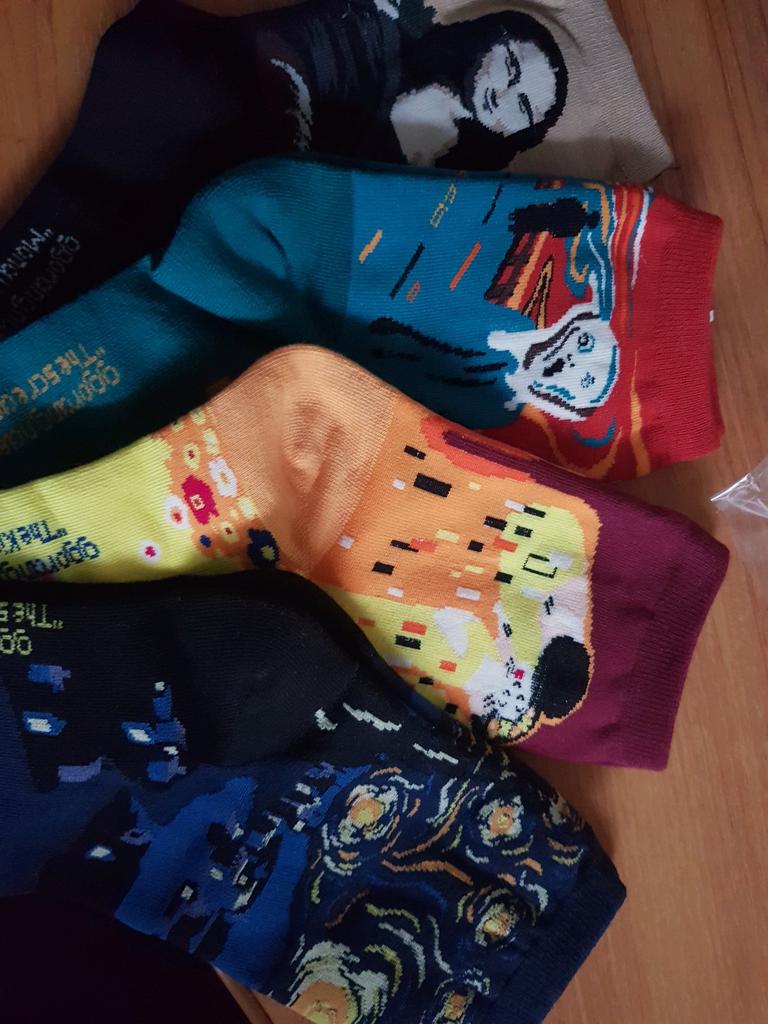 🧦"Мона Лиза,Вы ли это?"🧦 ⚡Доставка до Москвы из Кореи за 2 недели; ⚡Стоимость за комплект из 4 пар- 1088₽. Заказ для настоящих ценителей живописи.Пусть и на носках,почему бы и нет?Ведь препятствий для настоящего творчество НЕТ нигде и ни в чем 😏 Взяла на подарок. Фирма Intype. В первые беру Корейские носки,конечно в приятном шоке от качества. Приходят комплектом из 4 пар. Я дождалась скидки часа,применила купон и мне каждая пара обошлась за 272₽. Думала они тоньше!А теперь ценообразование вполне яснО. Носки чисто демесезонный вариант на холодную осень/зиму. Очень плотные,тёплые и мягкие. Сделаны из комбенированного хлопка с добавлением синтетики и эластана. Оно и лучше,не сядут со временем от стирки,да и будут более износостойкие. Размер идёт единый. От 22-26 размера стопы. Тянуться хорошо. Дизайн конечно потрясающий: модернист Густав Климпт со своим шедевром "Поцелуй", неумирающая "Мона Лиза" Леонардо да Винчи,экспрессионизм Мунка "Крик" и, конечно, всем известный постимпрессионизм Винсента Ван Гога "Звёздная ночь". Рекомендую очень! Классные👍 Всем добра и хороших покупок!🤗😎😍✌