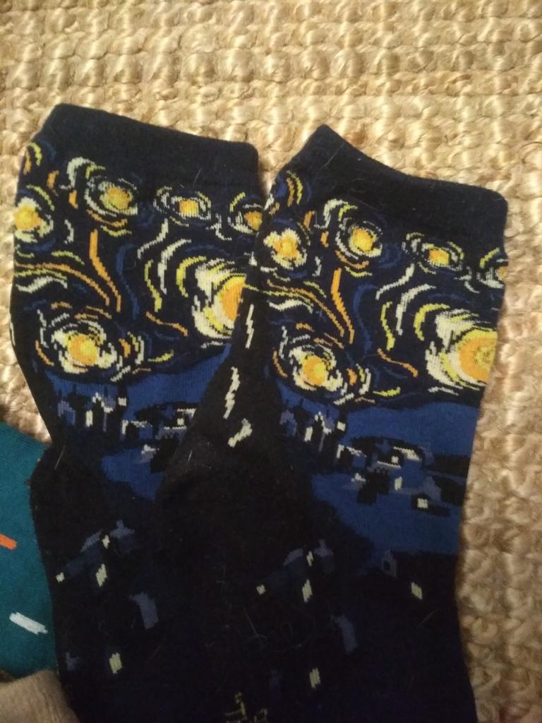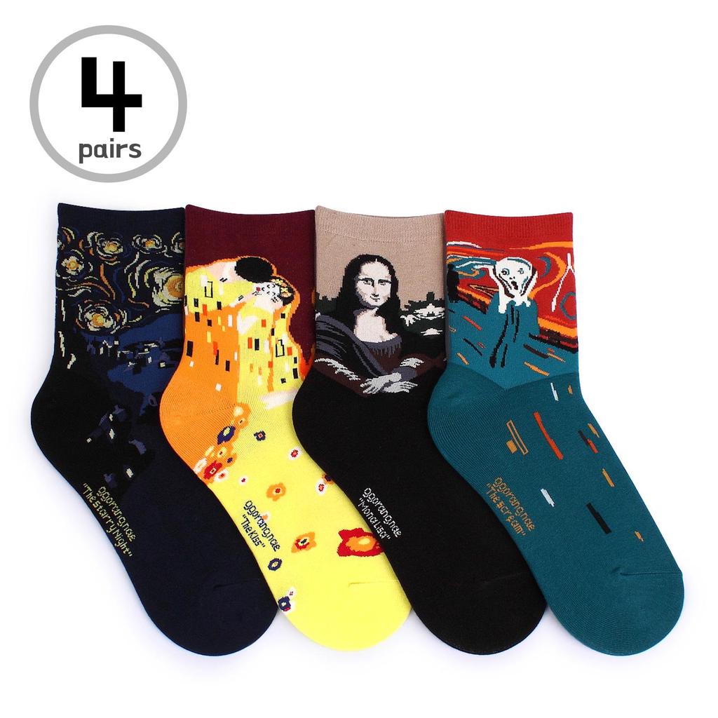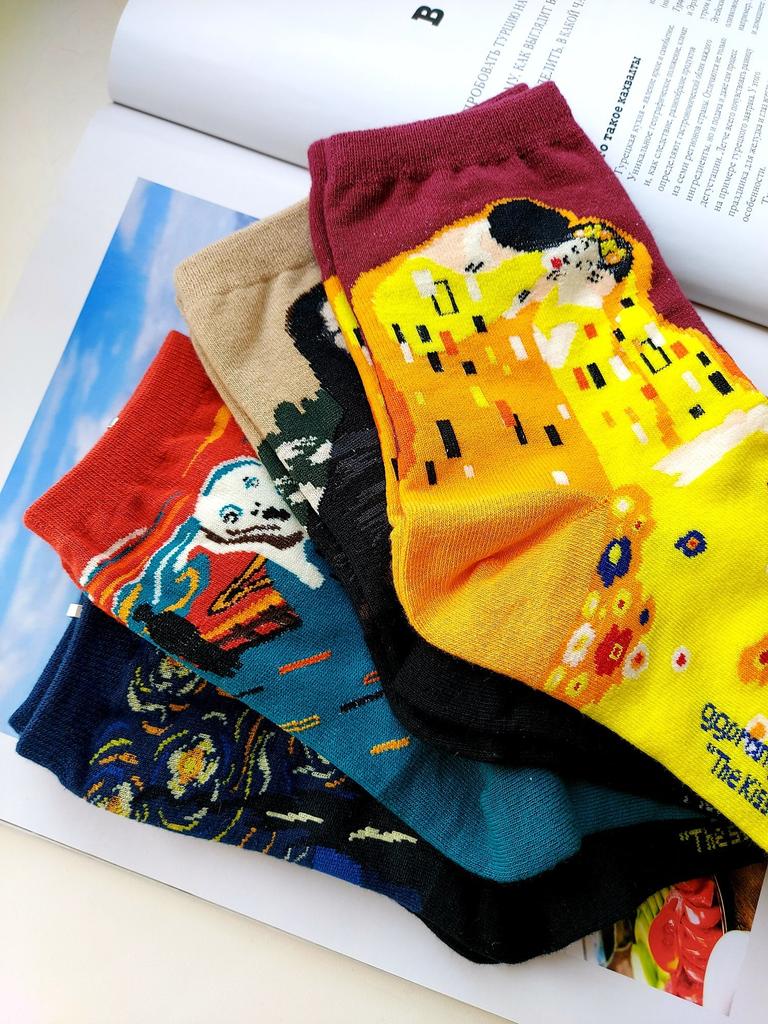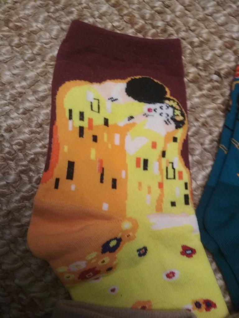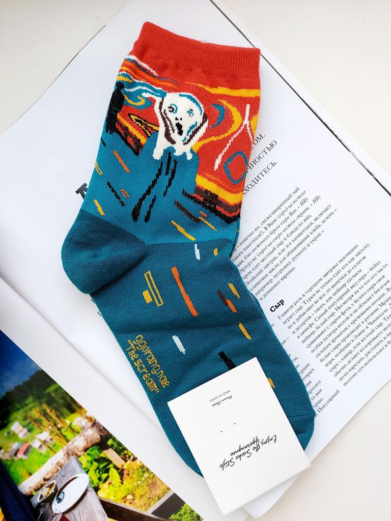 🧦"Мона Лиза,Вы ли это?"🧦 ⚡Доставка до Москвы из Кореи за 2 недели; ⚡Стоимость за комплект из 4 пар- 1088₽. Заказ для настоящих ценителей живописи.Пусть и на носках,почему бы и нет?Ведь препятствий для настоящего творчество НЕТ нигде и ни в чем 😏 Взяла на подарок. Фирма Intype. В первые беру Корейские носки,конечно в приятном шоке от качества. Приходят комплектом из 4 пар. Я дождалась скидки часа,применила купон и мне каждая пара обошлась за 272₽. Думала они тоньше!А теперь ценообразование вполне яснО. Носки чисто демесезонный вариант на холодную осень/зиму. Очень плотные,тёплые и мягкие. Сделаны из комбенированного хлопка с добавлением синтетики и эластана. Оно и лучше,не сядут со временем от стирки,да и будут более износостойкие. Размер идёт единый. От 22-26 размера стопы. Тянуться хорошо. Дизайн конечно потрясающий: модернист Густав Климпт со своим шедевром "Поцелуй", неумирающая "Мона Лиза" Леонардо да Винчи,экспрессионизм Мунка "Крик" и, конечно, всем известный постимпрессионизм Винсента Ван Гога "Звёздная ночь". Рекомендую очень! Классные👍 Всем добра и хороших покупок!🤗😎😍✌