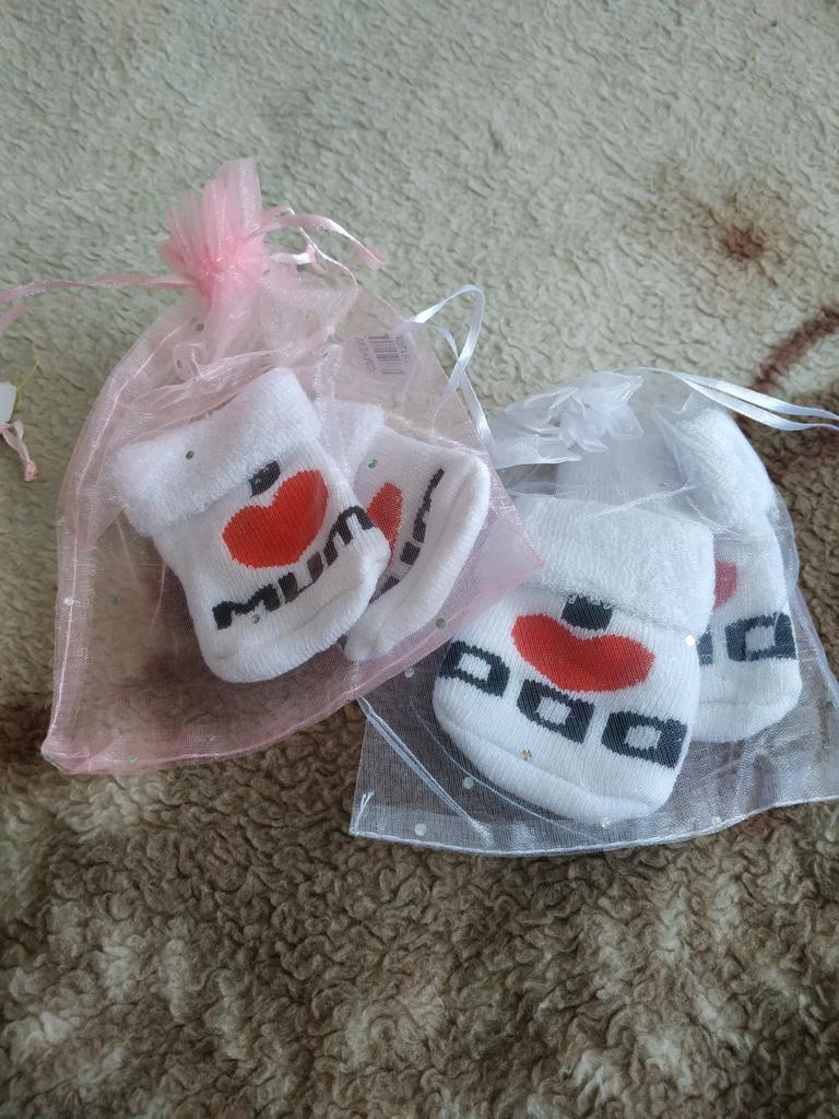 Носочки для новорождённого в подарочном пакетике. Так мило, они такие крохотульки. Синтетика, поэтому тянутся. Может-быть не стоит надевать непосредственно на ножки. Зато вполне на ползуночки, для красоты. Спасибо!