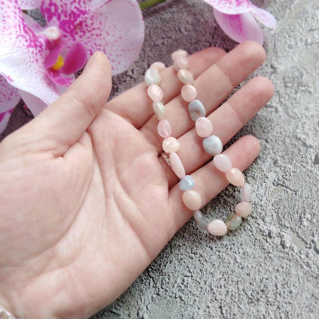 👍🌸🌷камушки берилл, неправильной формы. Мне очень понравились, заказывала две нитки. Сделала одну. Полноценную🌷 Камешки все разноцветные, но мне достались с малым количеством розовых и голубых, в основном зеленые и светлые. Заказывала после обзора Марины Дмитриевой, спасибо тебе моя дорогая.💋 Цена одной нитки 307₽, с купоном. ✈️долгая 2,5 месяца. Где- то блуждала. Всем здоровья и удачных покупок❤️