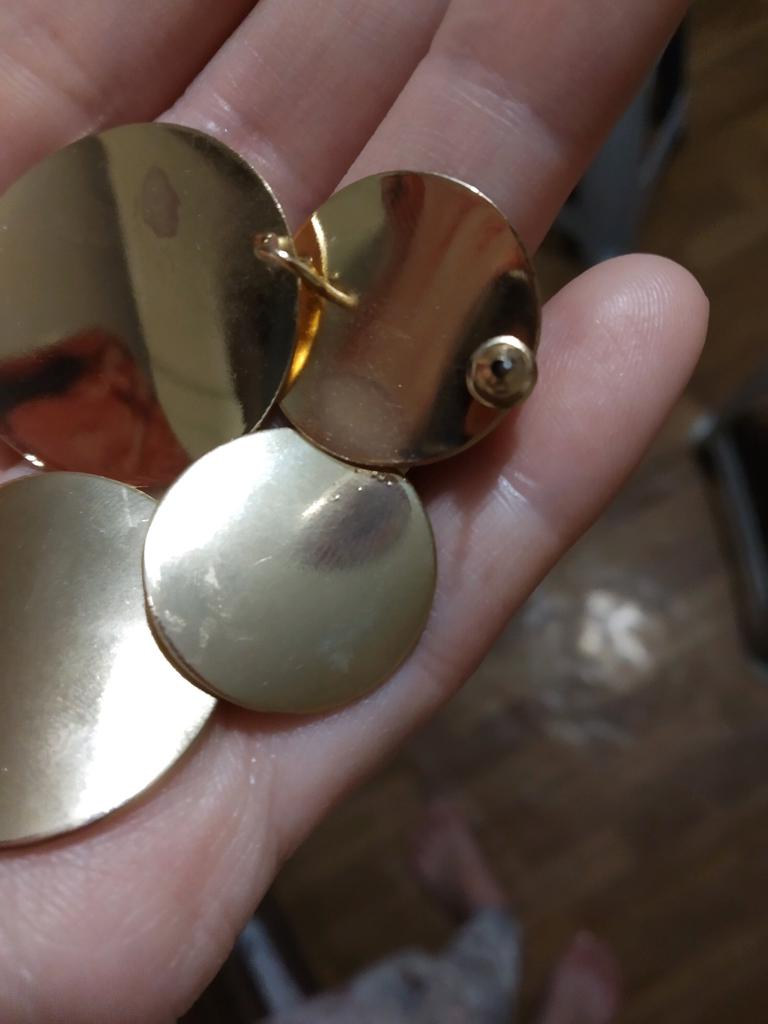 Ждала 3 месяца, доставили в почтовый ящик и большего разочарования я не испытывала за все время общения с JOOMoмом, поставила им 4 за качество, претензий нет, цвет под золото ( не известно , как себя поведет при носке) , но объясню почему расстроилась - дизайн: абсолютно цыганский: верхний круг диаметр 2.5 см; нижний 3,5 см; длина сережек 5 см; ширина 3,5 см. И все это богатство в золоте??? На картинке они смотрятся маленькими и аккуратными, на самом деле - они до середины шеи. Я женщина крупная, с длинной шеей, абсолютная блондинка с васильковыми глазами - вот это я одела и меня стало не видно. Может быть шатенке или рыженькой кареглазой даме это и может пойти, но я делюсь своим мнением. И все же спасибо продавцу. Он же работает для нас, в такое непростое время.
