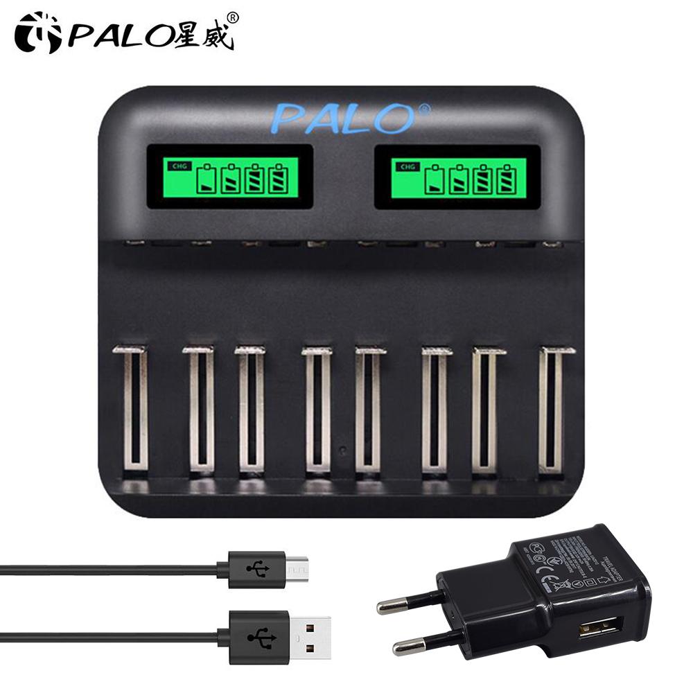 PALO 8-слотовый ЖК-дисплей, USB-умное зарядное устройство для аккумулятора AA AAA SC, размер компакт-диска, аккумуляторная батарея 1,2 В, Ni-MH Ni-CD, быстрое зарядное устройство