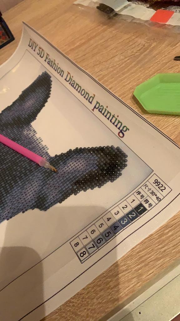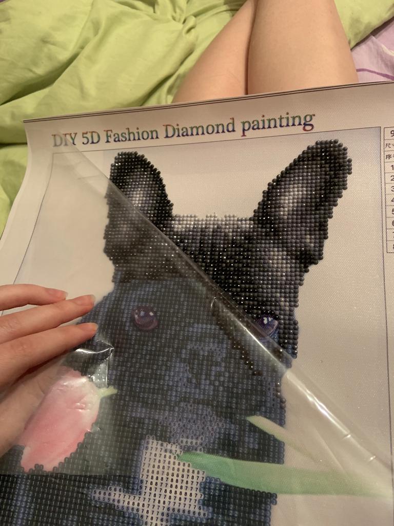 Брала как свою первую мозаику, поэтому выбирала небольшую, красивую, так сказать на первый и может последний раз, но всё понравилось и запало в душу, от процесса, до переливания алмазиков и итога. Выкладка неполная ( без глаз и цветка) Глаза это конечно существенный минус, но я всем осталась всё равно довольна:)