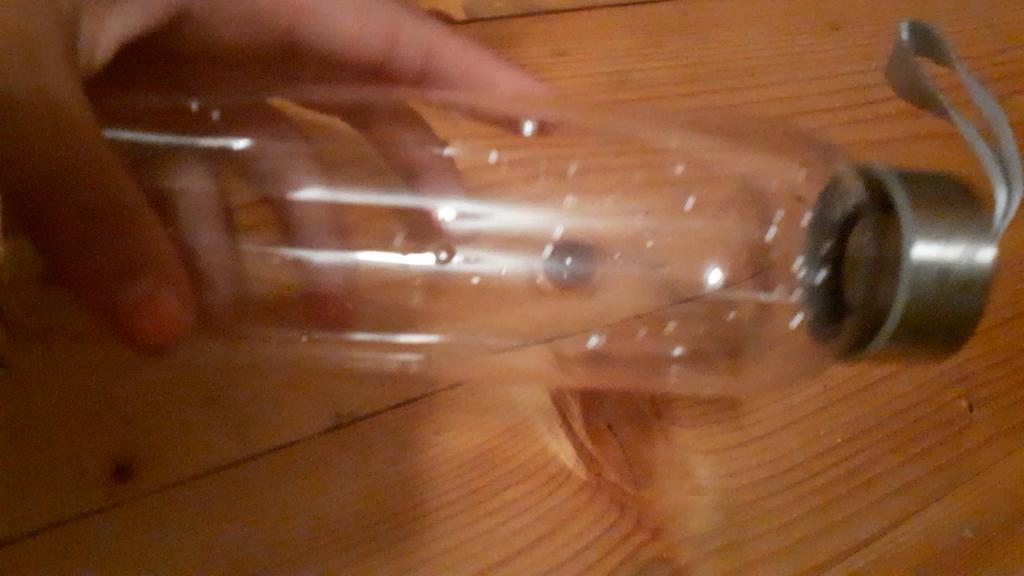 пластиковая, тонкая бутылка. Очень удобно держать в руке. В крышку встроена тряпичная петля. Выдернется эта петля во время использования пока не понятно. Крышка вроде вполне герметична. Пока только налили воду и потрясли-не пролилось. С собой в сумку/рюкзак еще не брали-на улице зима))) пока что нужен термос🙂