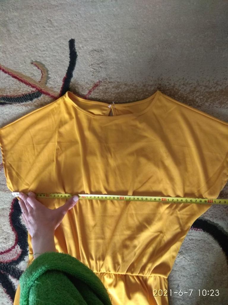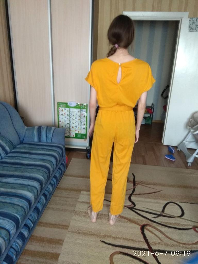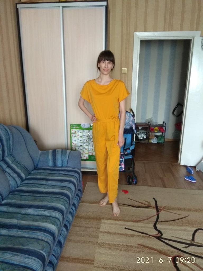 Цвет насыщенный жёлтый,как я люблю. Заказала М на свой рост 160. Для меня как раз,для высоких не подойдёт.Посадка хорошая,но торс сделали коротким,немного собирается на уровне таза,нужно поправлять( хотя,это скорее всего из за большой груди). Сзади нет никаких заломов,отлично сидит,длина хорошая- укорачивать не нужно,можно с каблуком одеть.Трикотаж синтетика,не просвечивает,сшит на 4 немного тянут швы.