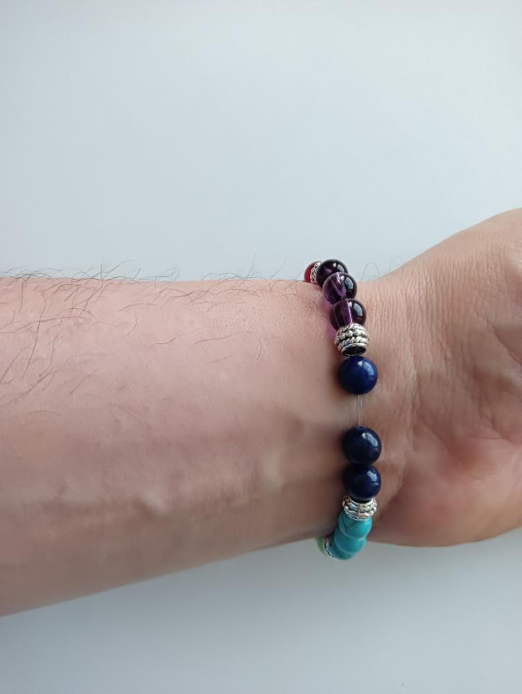 Прибыл мои браслетик из разных камушек . Хорошего качества на резинке. Это второй . Я очень довольно камни натуральные не пластмаса