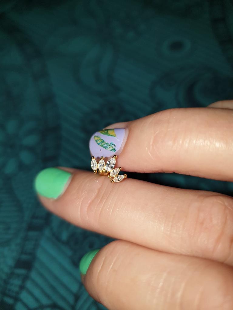 Серьги - абсолютный восторг 😍 Очень милые и аккуратные, для прокола хеликс - самое то)) Рекомендую 👍 Дополняю: после пары недель носки серьги начали окисляться и темнеть...