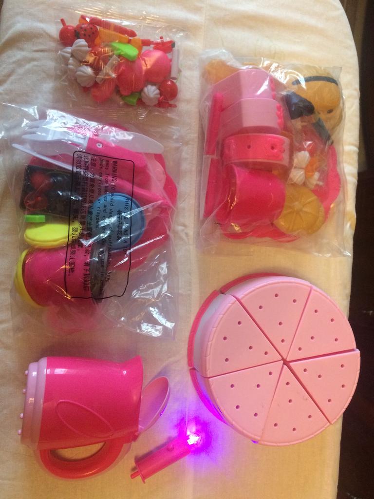 Тортик маленький. Деталей много... Но за такую цену я ожидала большего.... Самая дешевая пластмасса. У пирожков даже нет донышка... Липучки наклеены неровно. Из всех деталей на месте только 4 липучки. Приклеены не качественно. При "разрезании" -отваливаются. Наклейки повреждены, проц. 30... Так и хочется сказать "Да уж... " В общем цена на данный товар сильно завышена.. С качеством не совпадают...