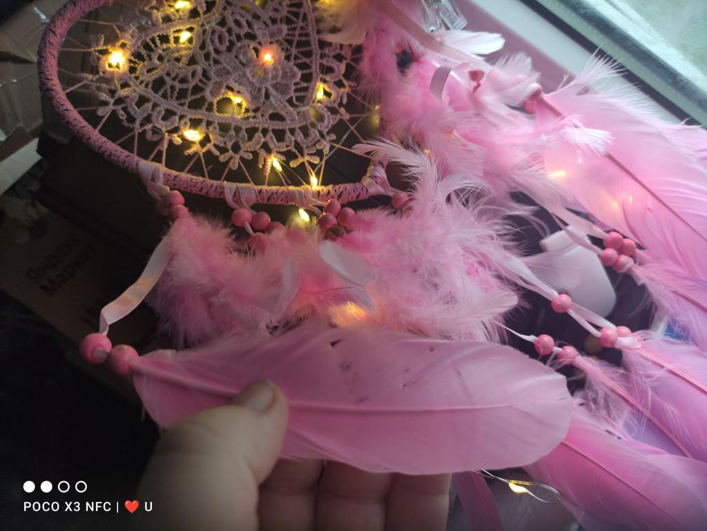 Очень красивый ловец снов! Покупаю уже второй. Сделан качественно, пёрышки, как настоящие! Батарейки в комплекте, всё горит и радует глаз. Спасибо магазину и Джум за качественный товар и быструю доставку.Товар рекомендую!!!