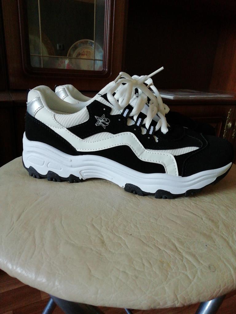 Кроссовки отличного качества!!! Запах новой обуви. Шли ровно месяц. Товар отслеживался до конца. Пришли без коробки, но хорошо упакованные. Чистые, не помятый. Подойдут на широкую ногу. Но 4 за размер. На свой 37 заказала 38, и все равно малы немного. По стельке 22,5 см. Стельки классные. Может дома на толстые носки разношу)))