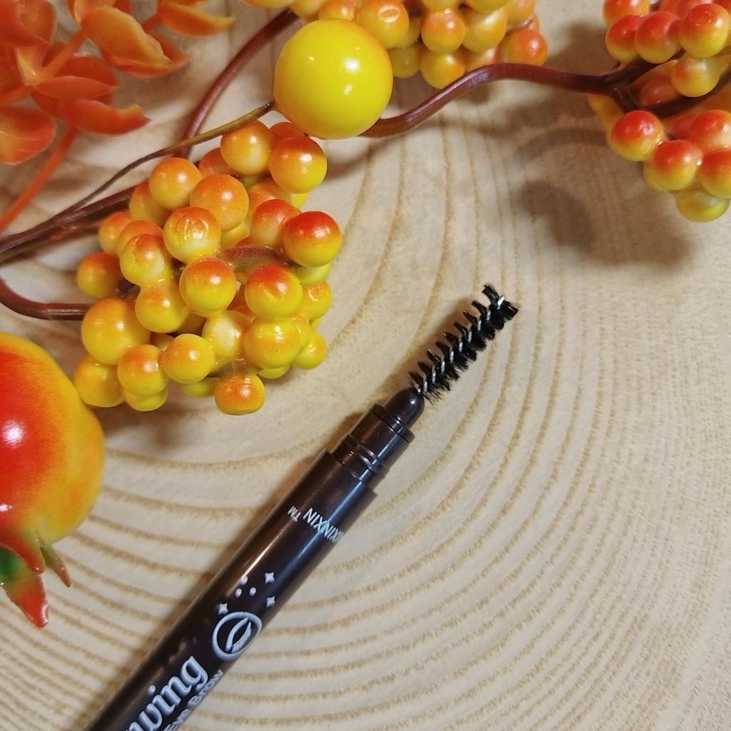 💙Заказала 30.07, пришло примерно через 3 недели в Сыктывкар. Трек отслеживался по Китаю. 💙Упаковка 2 пакета. 💙Цвет рыжеватый, хотелось бы потемнее. Я брала коричневый цвет, а надо было темно-коричневый. Если бы не рыжеватый оттенок, было бы идеально! 💙Пишут, что он водостойкий, не могу сказать, но карандаш нерастекается, держится целый день. Наносится легко и мягко. Недочёты убираются моментально. 💙Корпус пластиковый, прочный. Размер примерно 14,2 см. 💙Принцип карандаша с двумя стержнями по краям. С одной стороны карандаш, который выкручиваться, с другой стороны щёточка, чтобы придать правильную форму бровям. С каждой стороны имеется колпачок. 💙Стержень кажется очень мягким, но нет, он мягкий в меру. Примерно 2,7 см. 💙Средства - 2 гр. 💙Щёточка мягкая, не царапает. 💙Неприятного запаха нет. 💙Взяла на 47 баллов. Рекомендую 👍