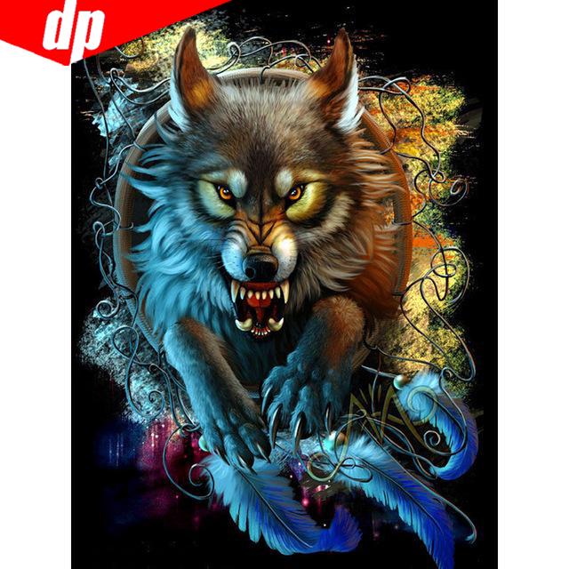 Алмазная картина Полный круглый Прибытие Животные Алмазная вышивка Продажа Волк Алмазная вышивка