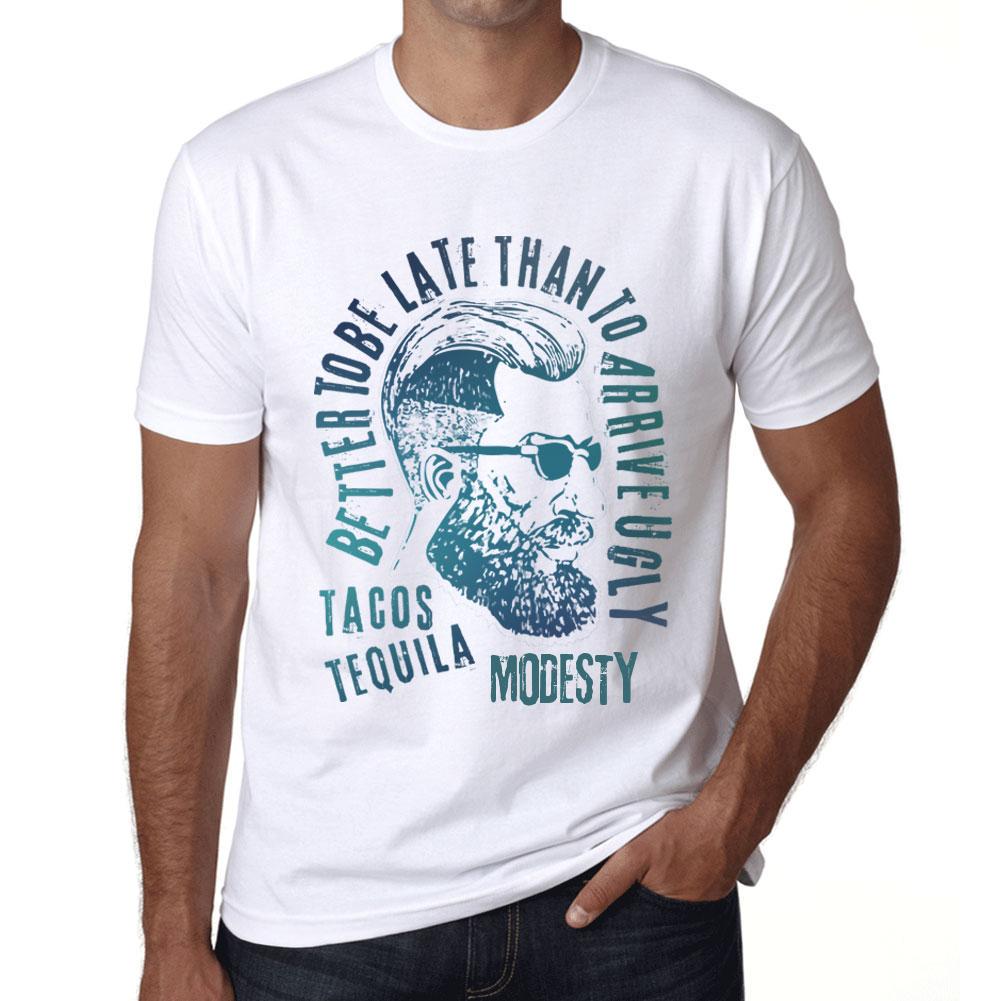 Мужская винтажная футболка Футболка с рисунком Tacos, Tequila and Modesty White