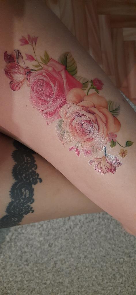 Татушка классная лепится очень легко, фото прилагаю.Спасибо продавцу и конечно джум.Это обычная наклейка, как раньше продавались саодилки на предметы, и это тоже самое, неделя не прошла ,а все почернело...