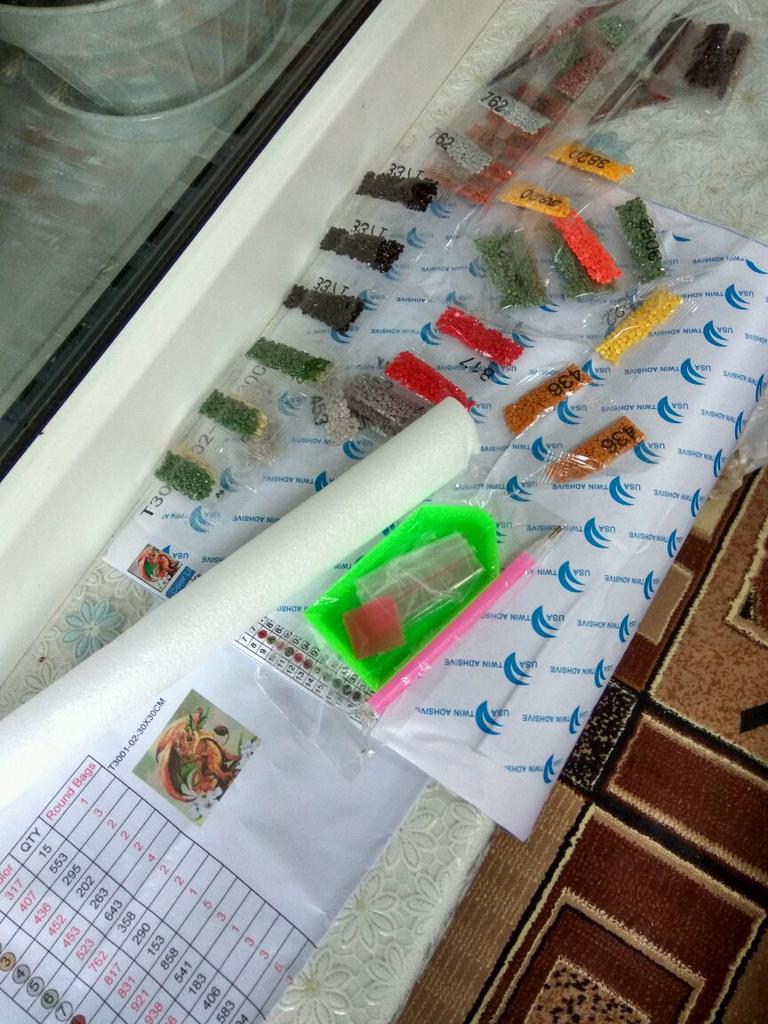 Сегодня курьер на дом принёс заказ,что очень приятно.на первый взгляд,все в наличие.стразы упакованы в зип-пакеты,и продавец ещё вложил дополнительные пакетики.клеевой слой больше чем сама картина,поэтому плёнку надо убирать очень аккуратно,а то он прилип к пленке,и его можно оторвать с пленкой вместе,в одном месте слой полез с пленкой я вернула плёнку на место и он снова прилип куда ему надо.как соберу картину,добавлю отзыв готовой работой)спасибо продавцу за быструю и удобную доставку.