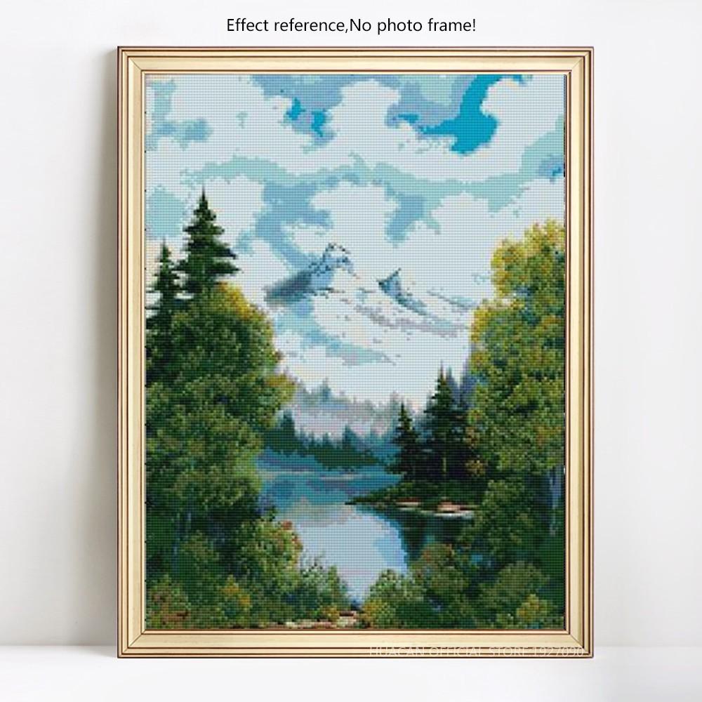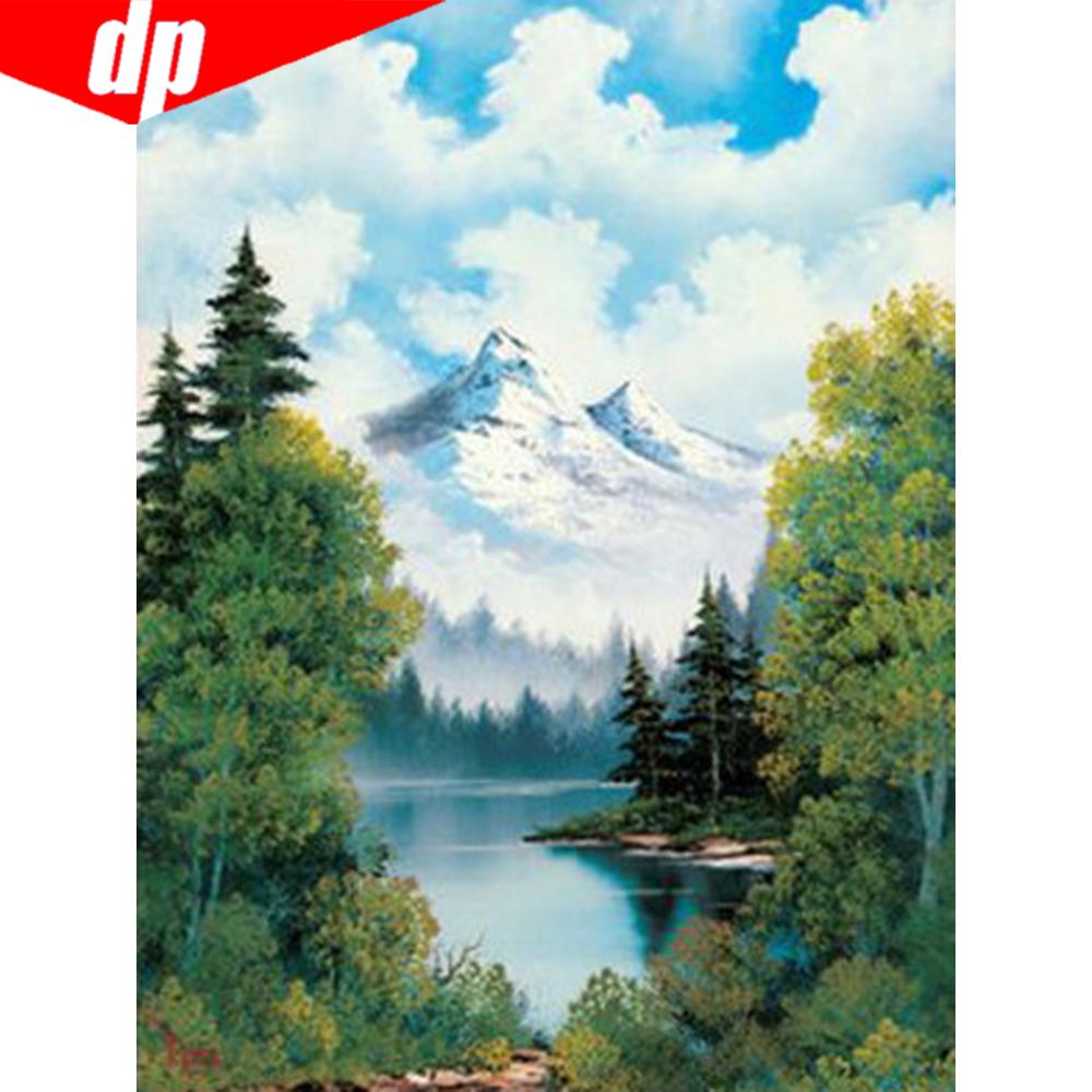 Алмазная вышивка «Гора и лесное озеро», полная круглая алмазная картина, вышивка крестом