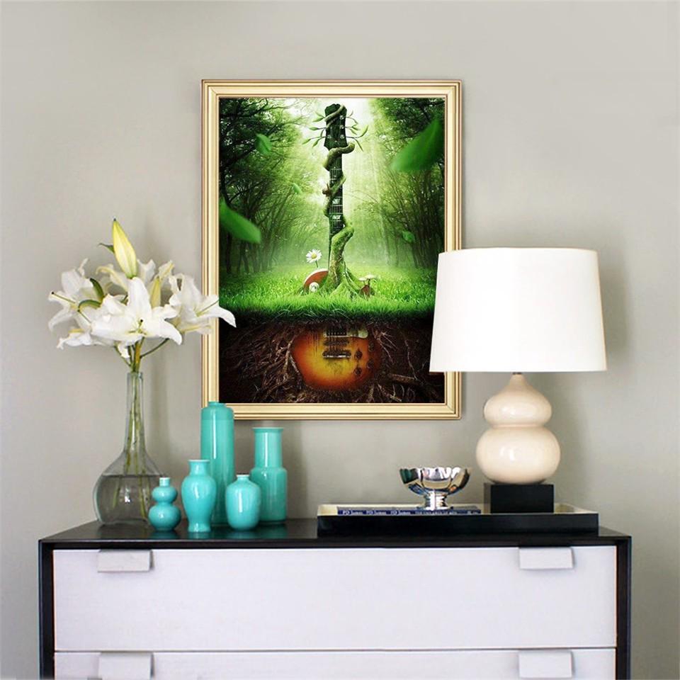 Полный круглый Алмазная картина Полный дисплей Пейзаж 5D DIY Алмазная вышивка Гитара Вышивка крестом