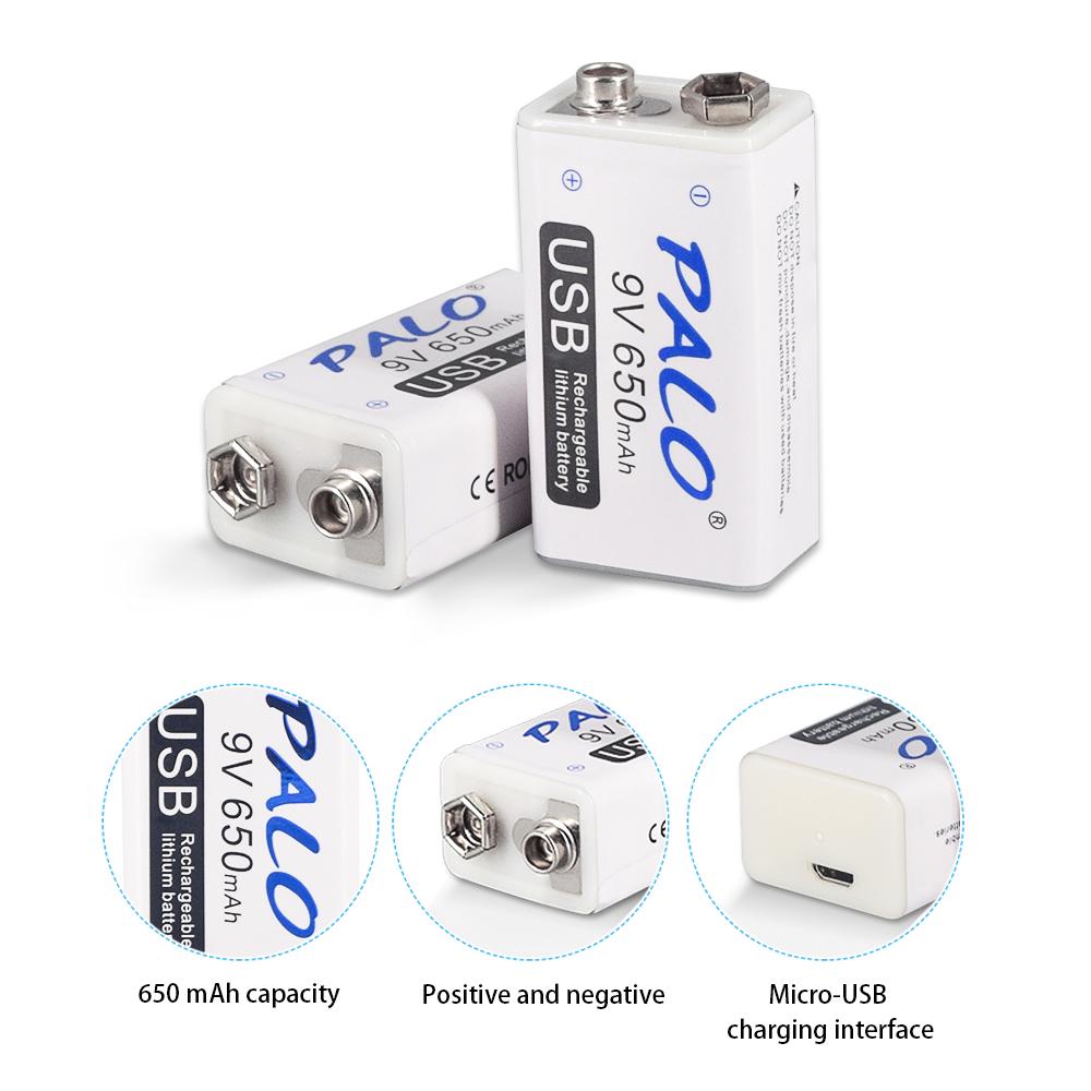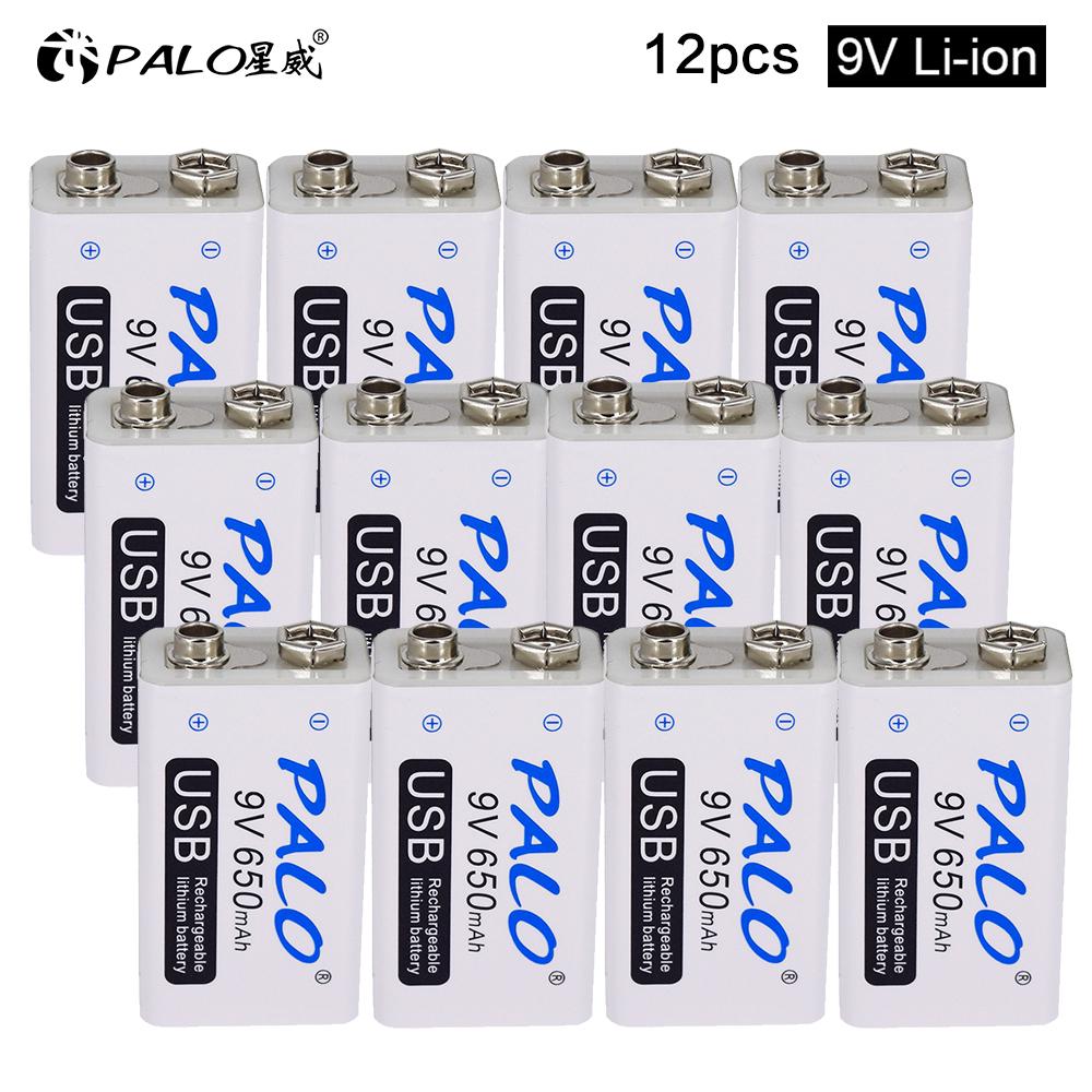 PALO 12 шт., 650 мАч, USB-перезаряжаемая литий-ионная батарея 9 В для радиоуправляемых камер, дронов, аксессуары и т. д.
