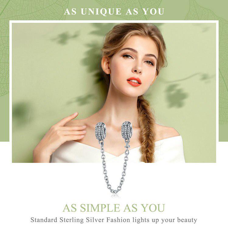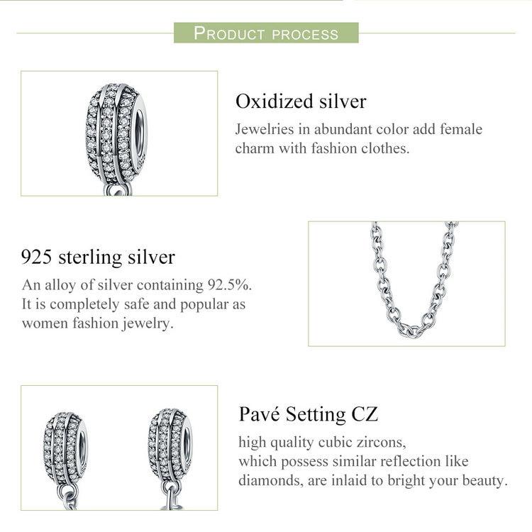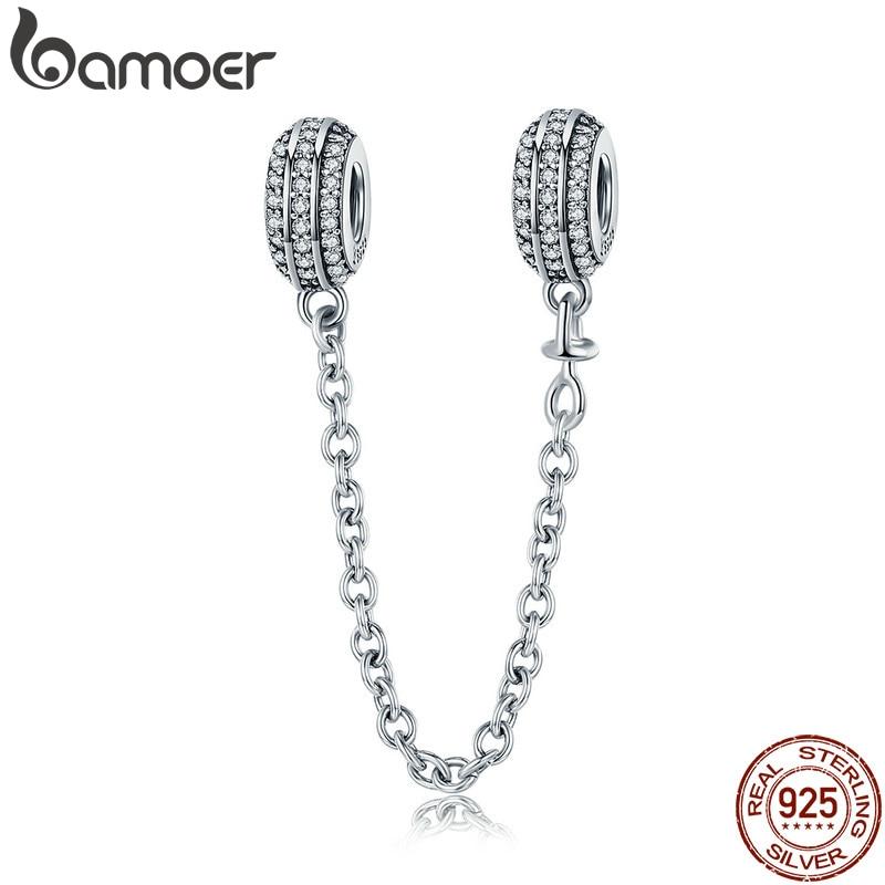 BAMOER 100% стерлинговое серебро 925 пробы, защитная цепочка Inspiration, прозрачные подвески с цирконами, подходящие для браслета-подвески