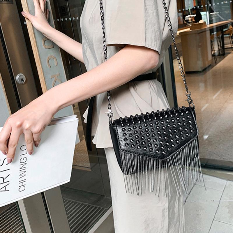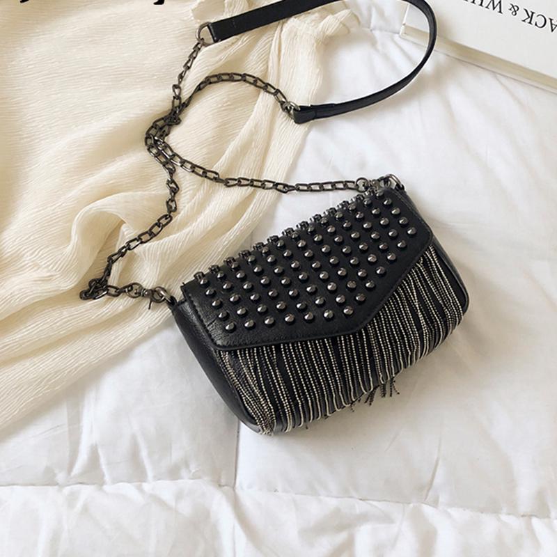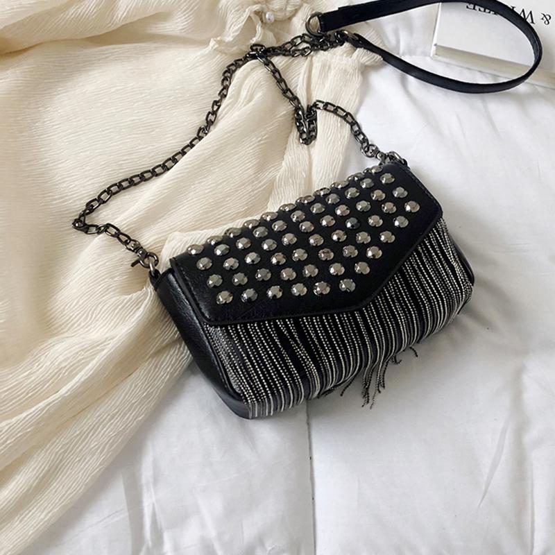 Модная мини-сумка через плечо с кисточками и бриллиантами, брендовый дизайн, черная кожаная сумка через плечо с заклепками, женская сумка Bolsa A Main