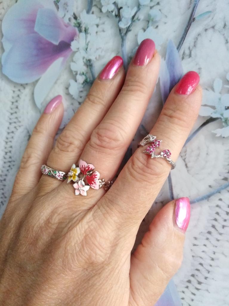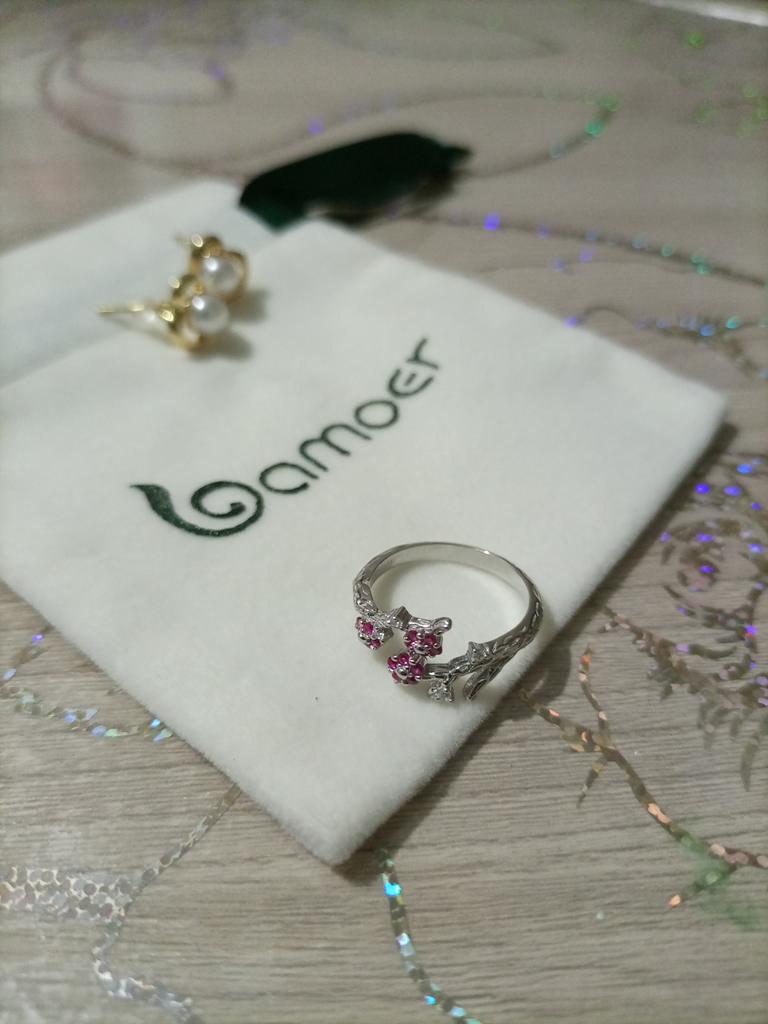 🌸Bamoer🌸 🌸Кольцо, заказала 22.09, а прибыл 09.11, заказ был оформлен на сумму 427 рублей, на это кольцо была ещё акция покупаешь кольцо в подарок идут серьги. Как же приятно получать такие подарочки, серёжки пришли☺️ 🌸Регулируемое серебряное кольцо с цветочным декором очень красивое и нежное. 🌸С кольцом пришел ещё мешочек, сам мешочек белого цвета, а завязки утяжки темно-зеленого цвета. 🌸Сам цветочный декор кольца за одежду не цепляется. 🌸Кольцо на руке выглядит очень элегантно, такое кольцо можно и подарить, выглядит оно просто великолепно. Спасибо продавцу и JOOM ❤️
