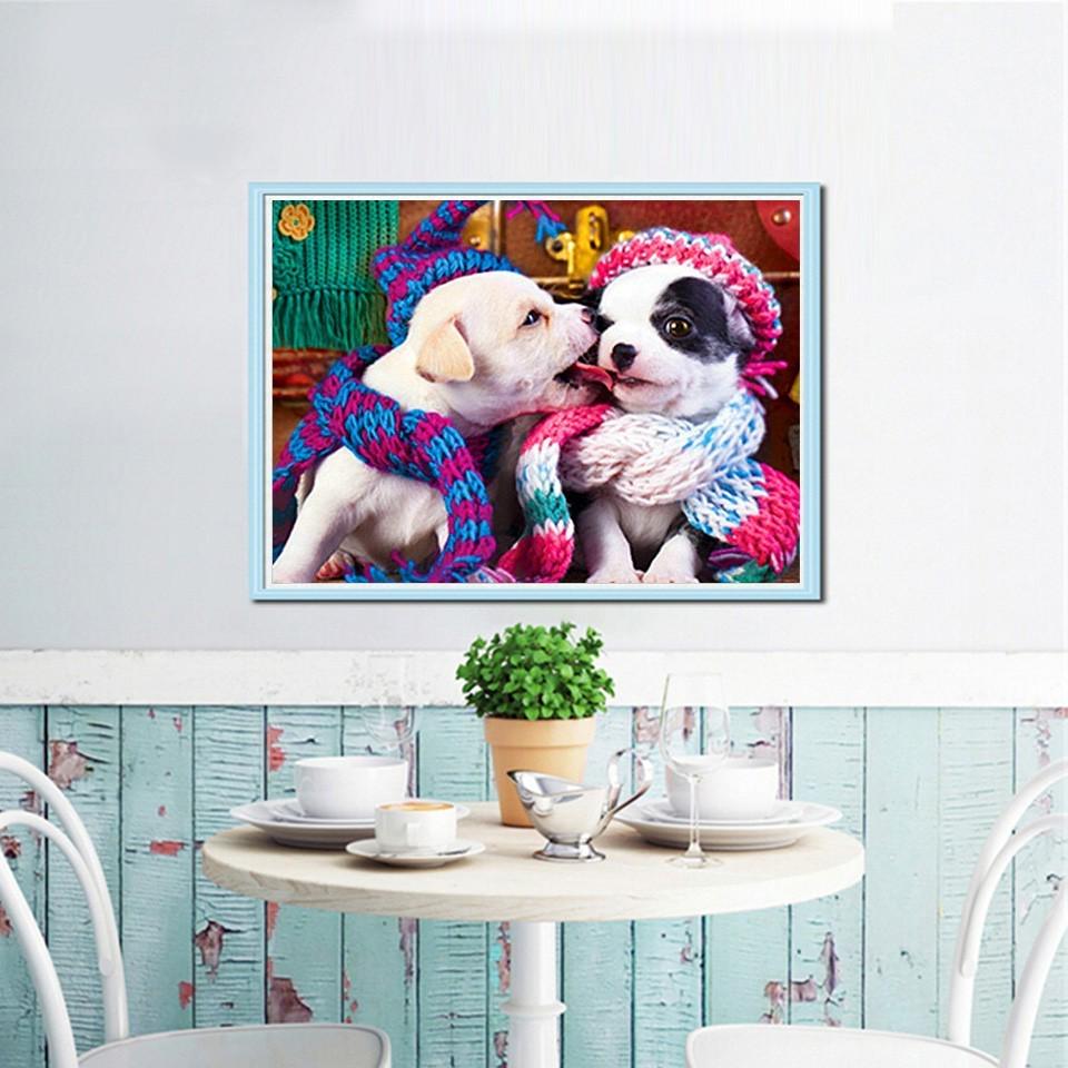 Алмазная картина Собака Алмазная вышивка Полная дрель Круглая картина животного