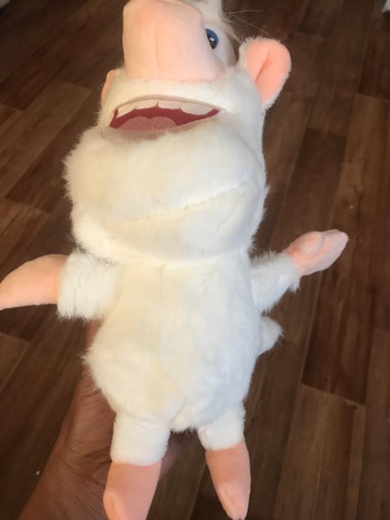 Любимый персонаж и верный друг сына. Заказывался в подарок ко дню Рождения, но из-за сроков доставки опоздал аж на месяц ( в Благовещенск Амурской области Буба добрался за два месяца), так что пришлось праздновать дважды. Зато ребенок счастлив и играет с Бубой постоянно. Качество игрушки отличное: все прошито, все заполнено, нигде нет дырок и лишних ниток. БлагоДарю продавца и Джум за счастье и нового друга для сынули!