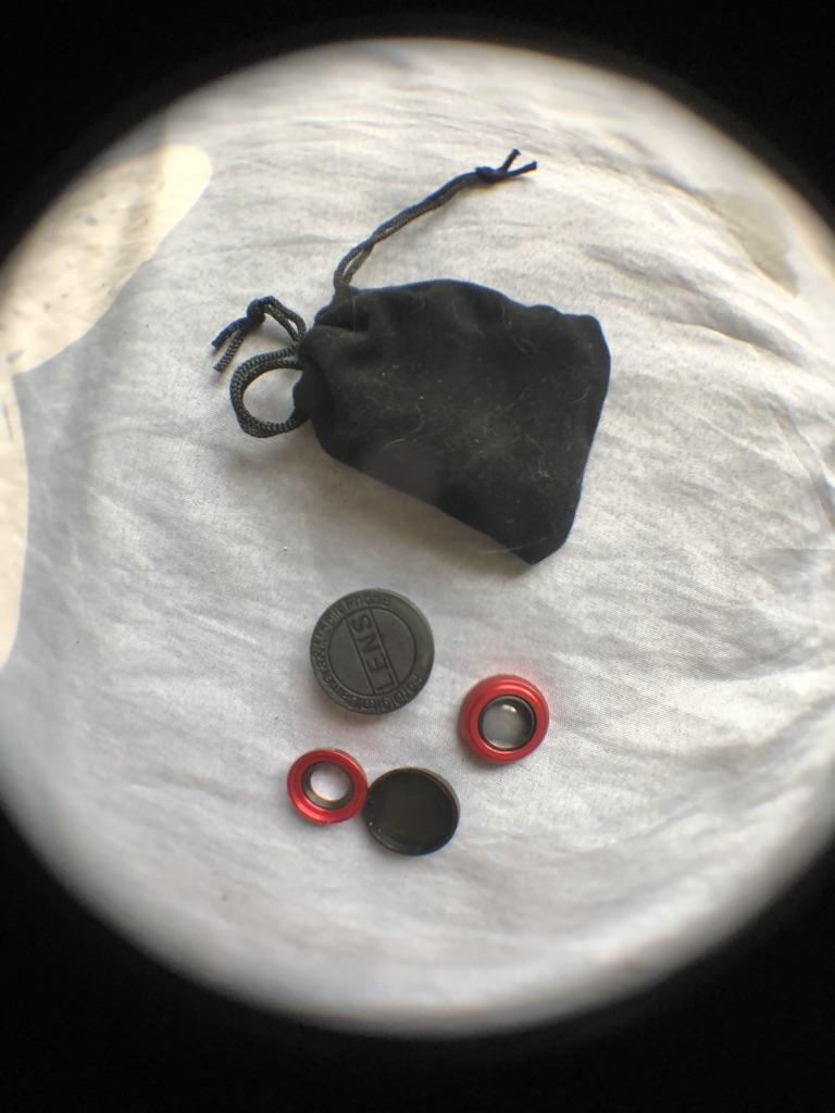 Пришёл быстро, за 3 недели. Сделано за такие деньги очень даже добротно. Мини объективы выполнены из алюминия, с защитными крышками, качественная гравировка на каждом объективе, в комплекте с мешочком. Не люфтят нигде, прищепка крепкая. Но. На мой iPhone X не совсем подошли. С объективом wide на фото видны чёрные углы. Хотя в кадр влазит всего немного больше, чем без объектива. Но он чуть перекрывает родную камеру и это даёт затемнения. Объектив рыбий глаз - тот вовсе затемняет фото со всех сторон. Да, эффект объектива присутствует, но как будто в дверной глазок смотришь))) Объектив макро работает практически впритык к обьекту. Последнее видео с него. Два последних снимка выложила с широкоугольника и рыбки. В общем, ожидала ещё более крутых фото со своей камеры с этими объективами, но родная камера айфона снимает все же лучше без этих объективов)))