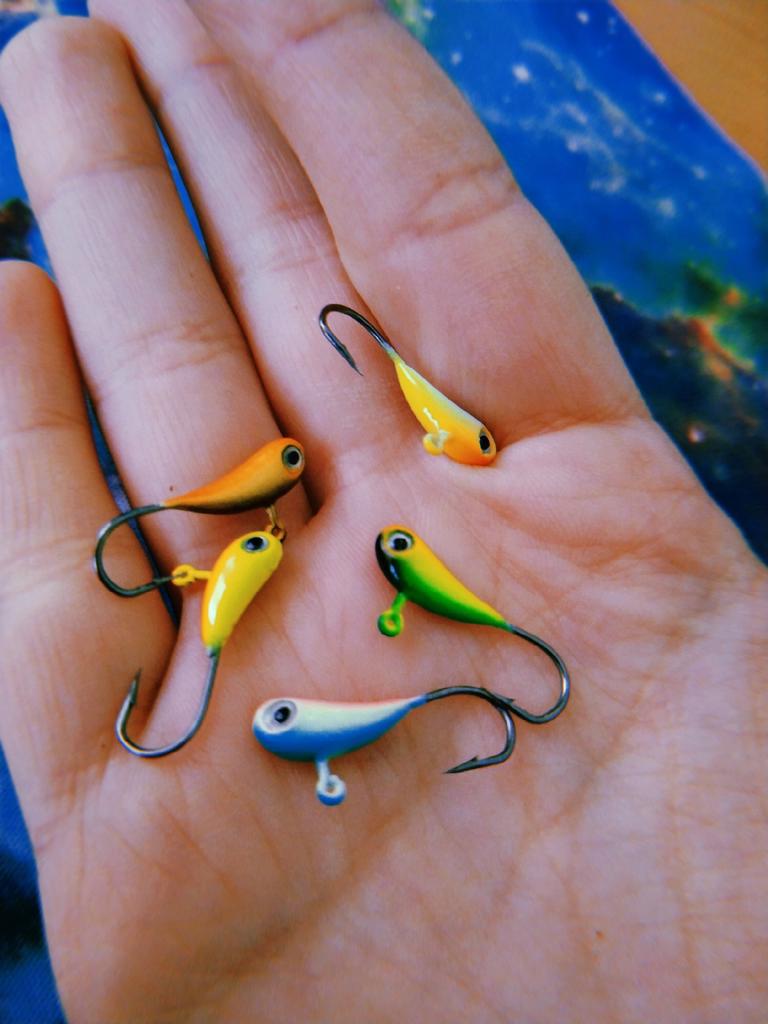 🐟 Крючки с приманками для зимней рыбалки🐟 Брала на подарок дедушке ♥️💙 ▪️ В наборе 5 шт ▪️ Длина приманки - 1,2 см, длина приманки вместе с крючком - 2 см ▪️ Рыбки добротные, увесистые, видимо, под краской - метал. ▪️ Глазки как настоящие, покрас без косяков ▪️ Крючки острые ▪️ Цена - супер 🔥 🚛 Доставка меньше трёх недель, кинули в п/я, упакован хорошо. ✔️Товар и продавца рекомендую!