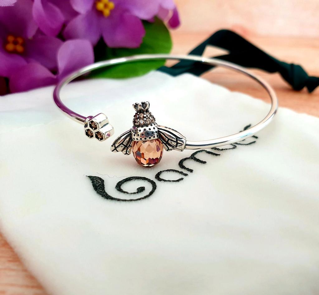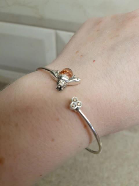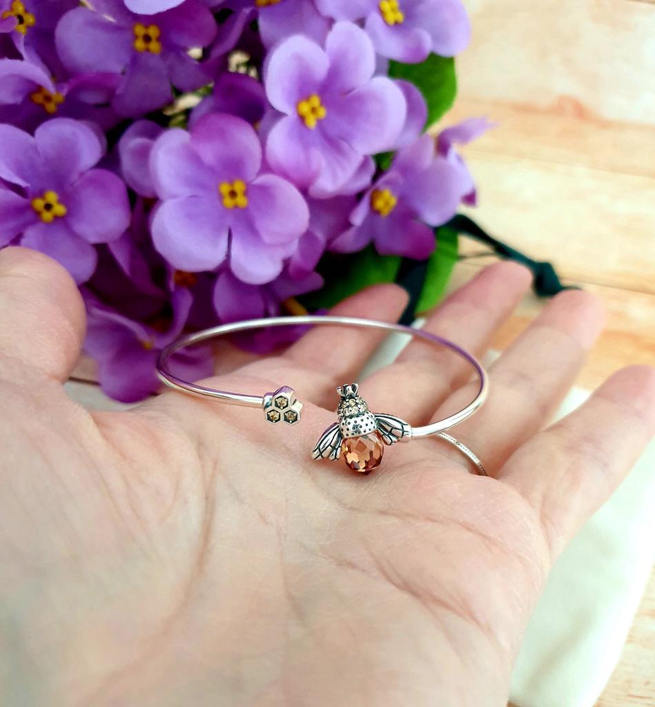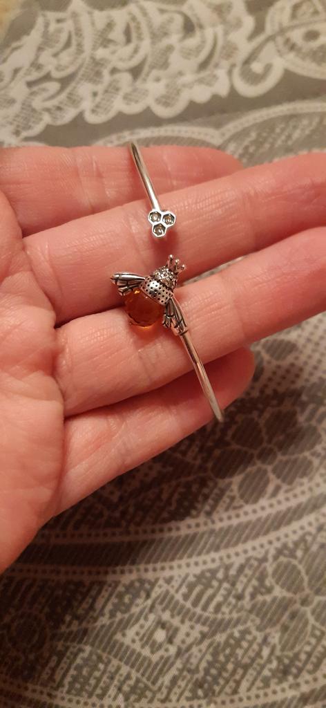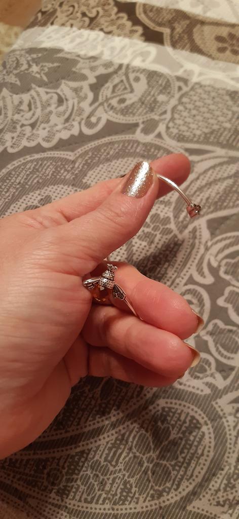 Ещё один браслет с пчелой от магазина Bamoer Твердый, в виде обода, стоит проба серебра. Надевать легко, смотрится дорого! Пришел в фирменном мешочке с названием. Рекомендую! Спасибо магазину и Joom