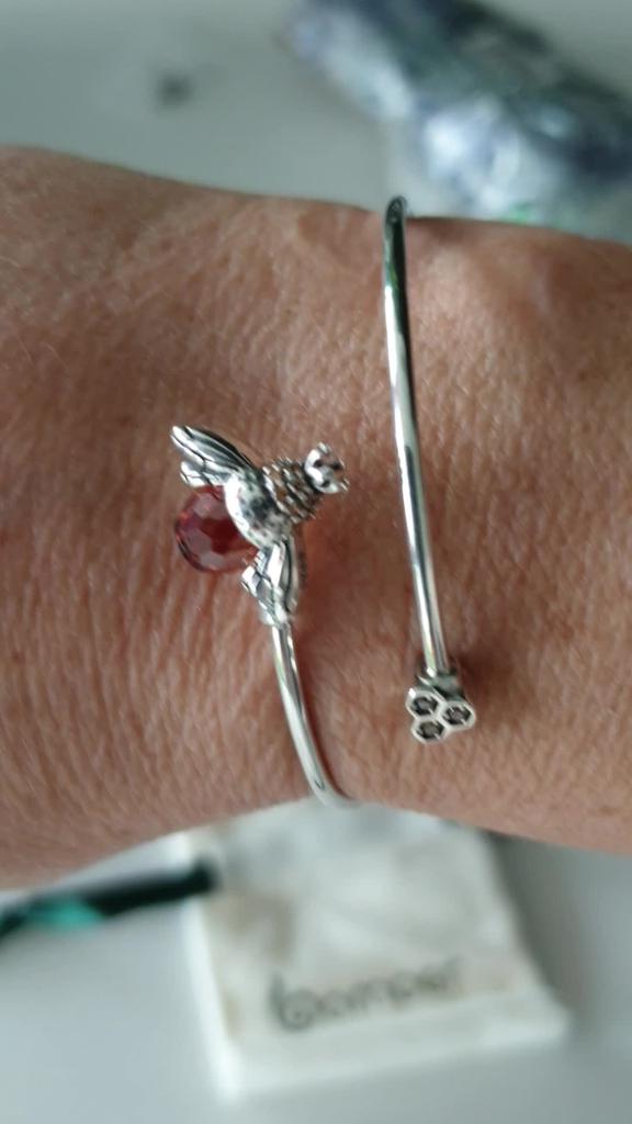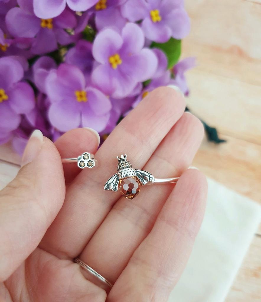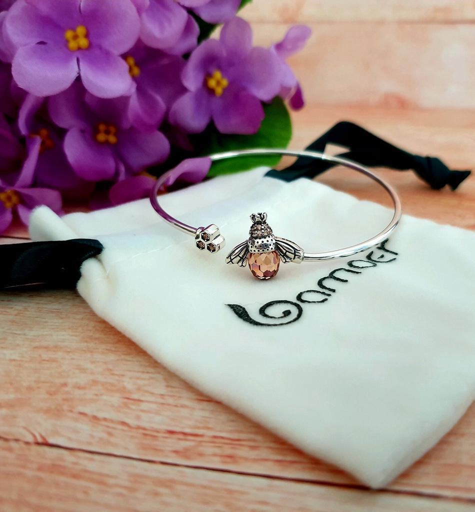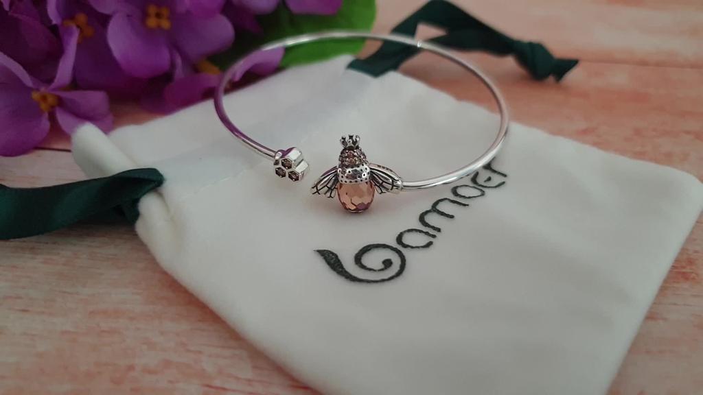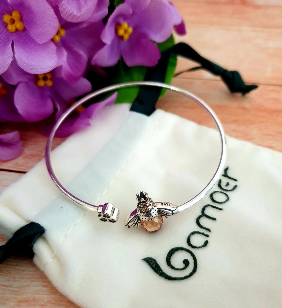 Ещё один браслет с пчелой от магазина Bamoer Твердый, в виде обода, стоит проба серебра. Надевать легко, смотрится дорого! Пришел в фирменном мешочке с названием. Рекомендую! Спасибо магазину и Joom