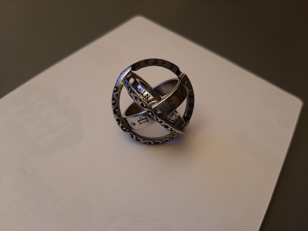 Кольцо-трансформер из пяти колец принимающее форму астрономической небесной сферы