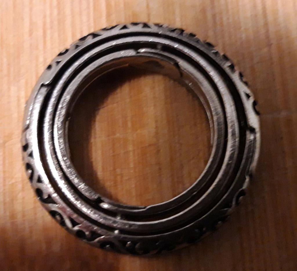 Кольцо как на картинке. Самое маленькое еще не смогла разъединить, туговато. А так все хорошо. Спустя время уже свободнее разъединяется, занятная вещица. Можно носить как подвеску. А еще тренирует моторику пальцев.