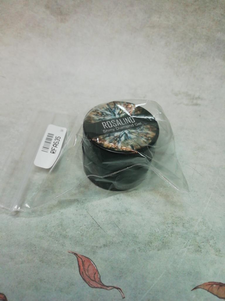 Заказала гель 9 ноября, в Россию он пришёл 22 декабря, а 4 января отметился в моём почтовом отделении (Москва). Заказываю гель из этой коллекции не первый раз, уже брала такой в голубом цвете. Доехал благополучно, не протёк. Горлышко баночки было заклеено защитной плёнкой, от которой оказалось не так просто избавиться, пришлось прорезать - вклеили на совесть. Объём баночки 5мл. Консистенция плотная, густая, удобно наносить спонжем, чтобы лишний гель впитывался, а блёстки ложились плотнее к друг другу. Кстати о блёстках, здесь они разные: совсем маленькие, чуть побольше и крупные конфетти. Всё это замешено в прозрачном геле. В качестве демонстрации на ногтях пока что показываю такой же в голубом цвете (фото 6). Потом дополню отзыв фотографиями этого геля, когда попробую его. Продавцу спасибо, заказом довольна, рекомендую. К Rosalind никогда нареканий не было.