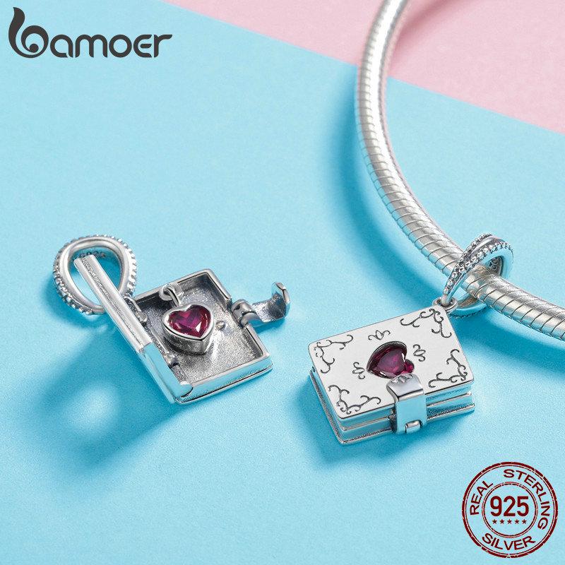 Bamoer 925 серебро шарм-кулон амулет Книга любви - Сердце на замке