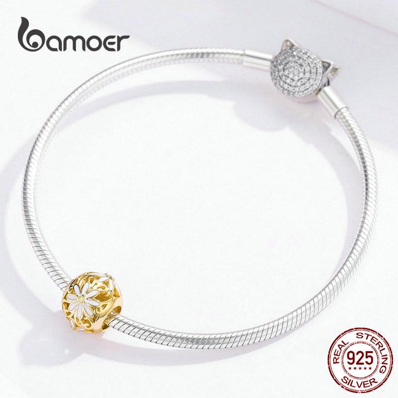 BAMOER круглые бусины с золотым эмалевым цветком для женщин, изготовление ювелирных изделий, стерлинговое серебро 925 пробы, ажурные круглые