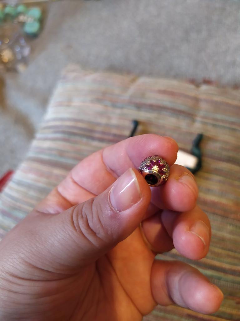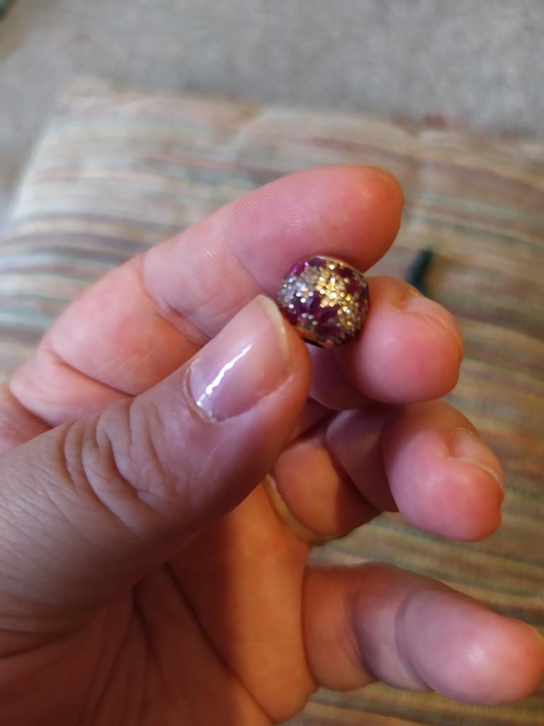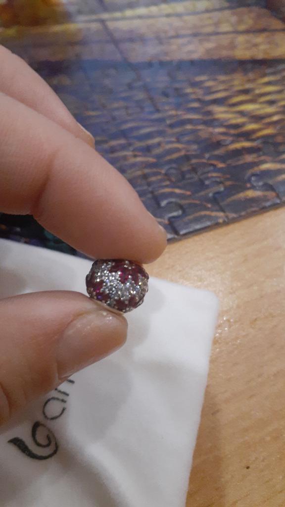 Очень красивый шарм! Сверкает, все кристаллики на месте. Прислали с красивым мешочком. Чудесная вещь. Продавец всегда присылает такие красивые мешочки и шармы.
