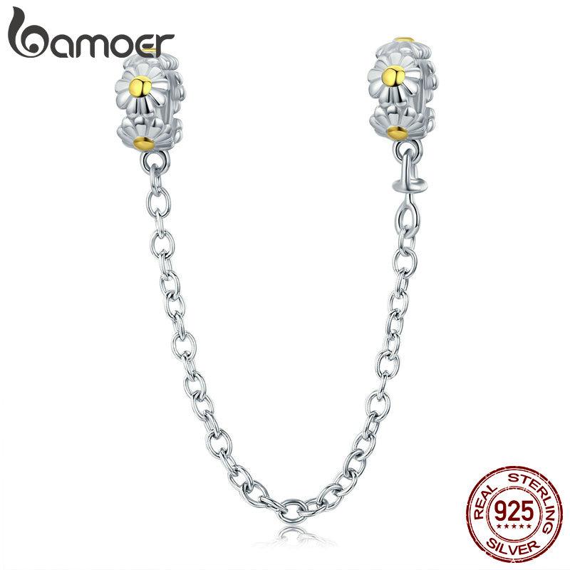 BAMOER Популярный 100% стерлинговое серебро 925 пробы, штабелируемая подвеска-стопор для цепи безопасности с цветком ромашки