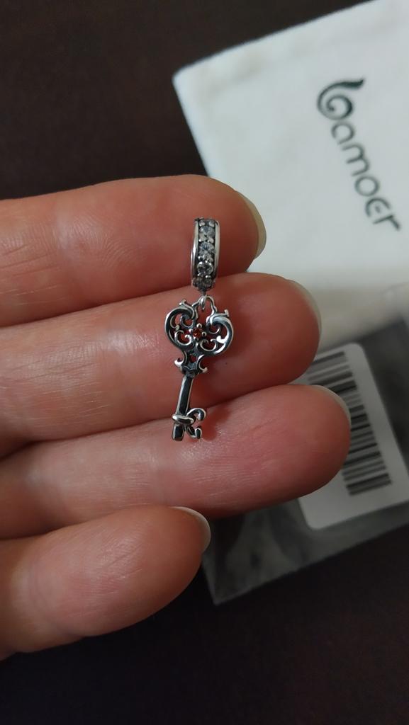 Подвеска ключик.🗝️ Всем мой тёплый приветик! 👋 Получила очередной шармик из стерлингового серебра 925 пробы от бренда BAMOER. Пришёл, как обычно, с фирменным бархатным мешочком в зип-пакете и пупырке. Проба стоит. Ключик премиленький! С одной стороны плоский, с другой - винтажный узор и маленький красный камушек в центре. Можно носить как на браслете, так и на цепочке. Мне оооочень понравился. Рекомендую однозначно! 💯🥰👌 Доставка в РБ три недели с частичным отслеживанием.📦 Спасибо продавцу и Джуму! 🤗❤️ Всем приятных покупочек и быстрых доставочек! 😉🛍️🛒